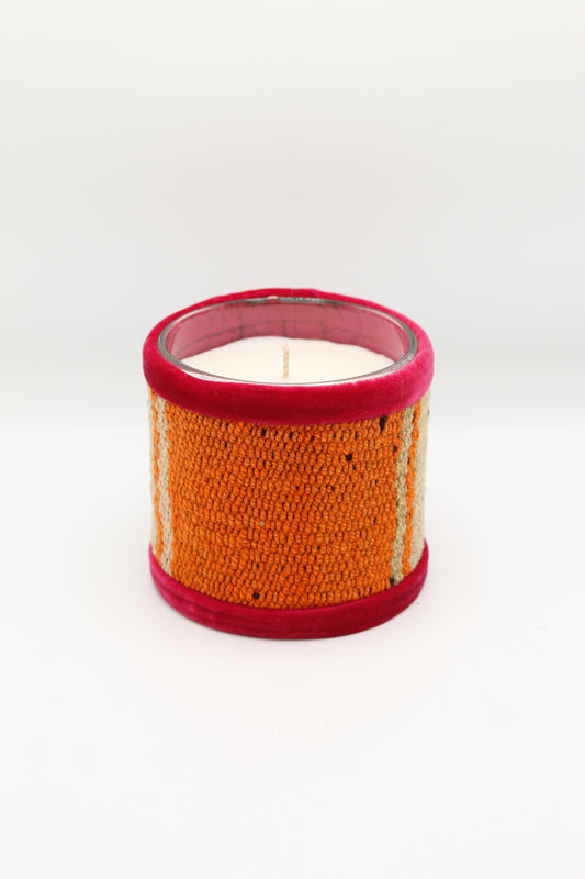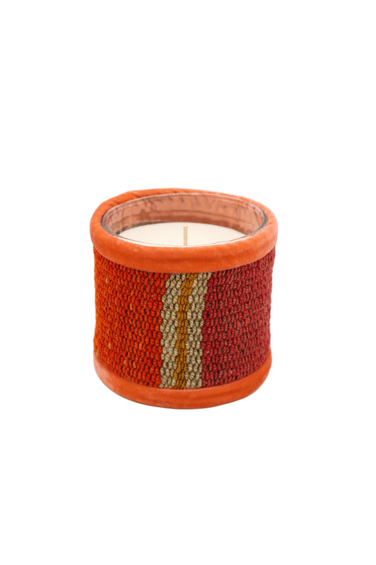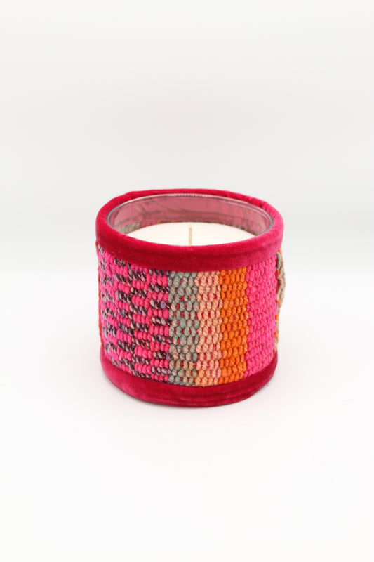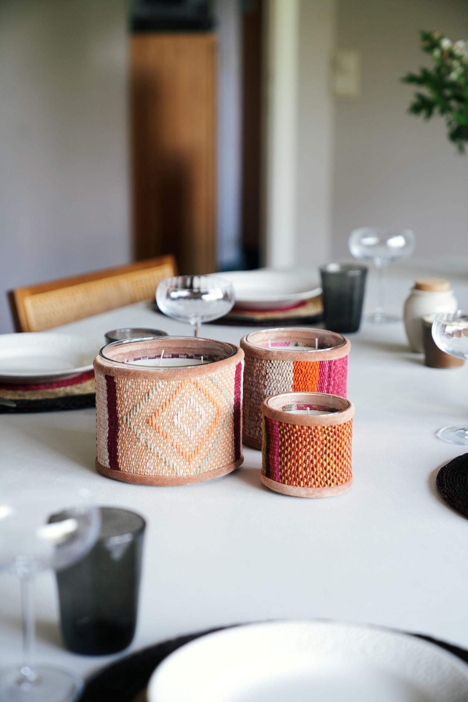 Ces bougies sont recouvertes de chutes de tissus tissés à la main par une civilisation de femmes au Pérou. Chaque bougie est une pièce unique, reflet de l'artisanat andin et de ses couleurs vives et éclatantes. Cette collection est parfumée de notre fragrance "Balade en forêt", un subtil mélange de cèdre, d’ambre et d’eucalyptus.