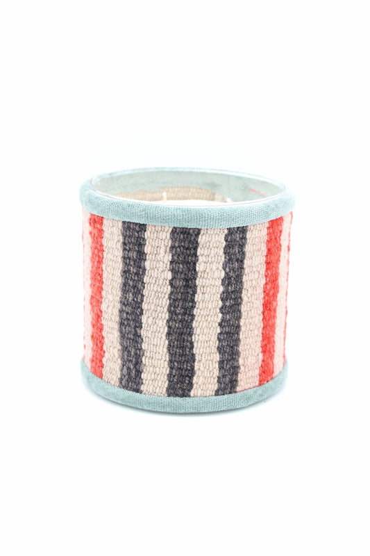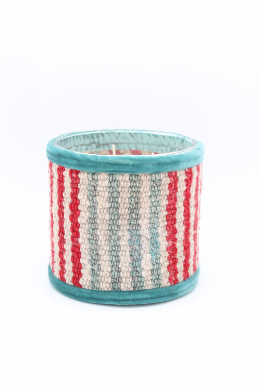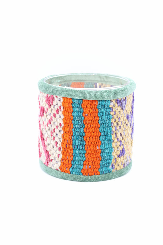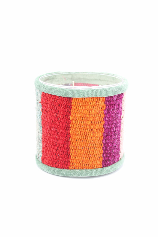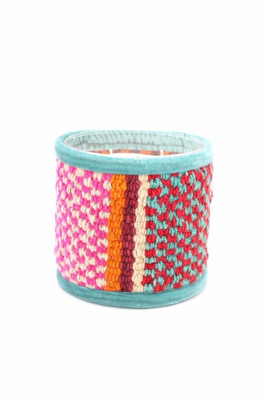 Ces bougies sont recouvertes de chutes de tissus tissés à la main par une civilisation de femmes au Pérou. Chaque bougie est une pièce unique, reflet de l'artisanat andin et de ses couleurs vives et éclatantes. Cette collection est parfumée de notre fragrance "Balade en forêt", un subtil mélange de cèdre, d’ambre et d’eucalyptus.