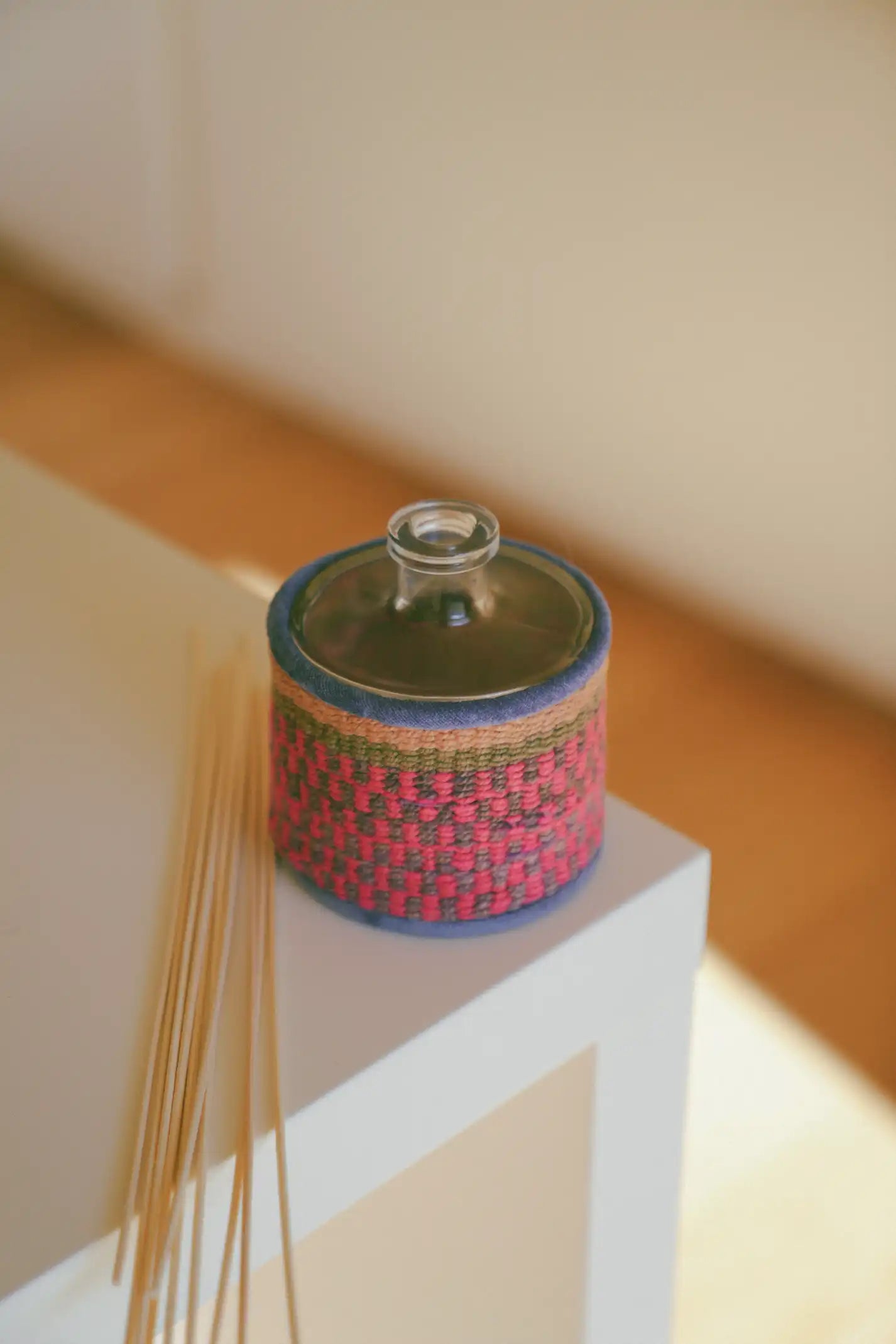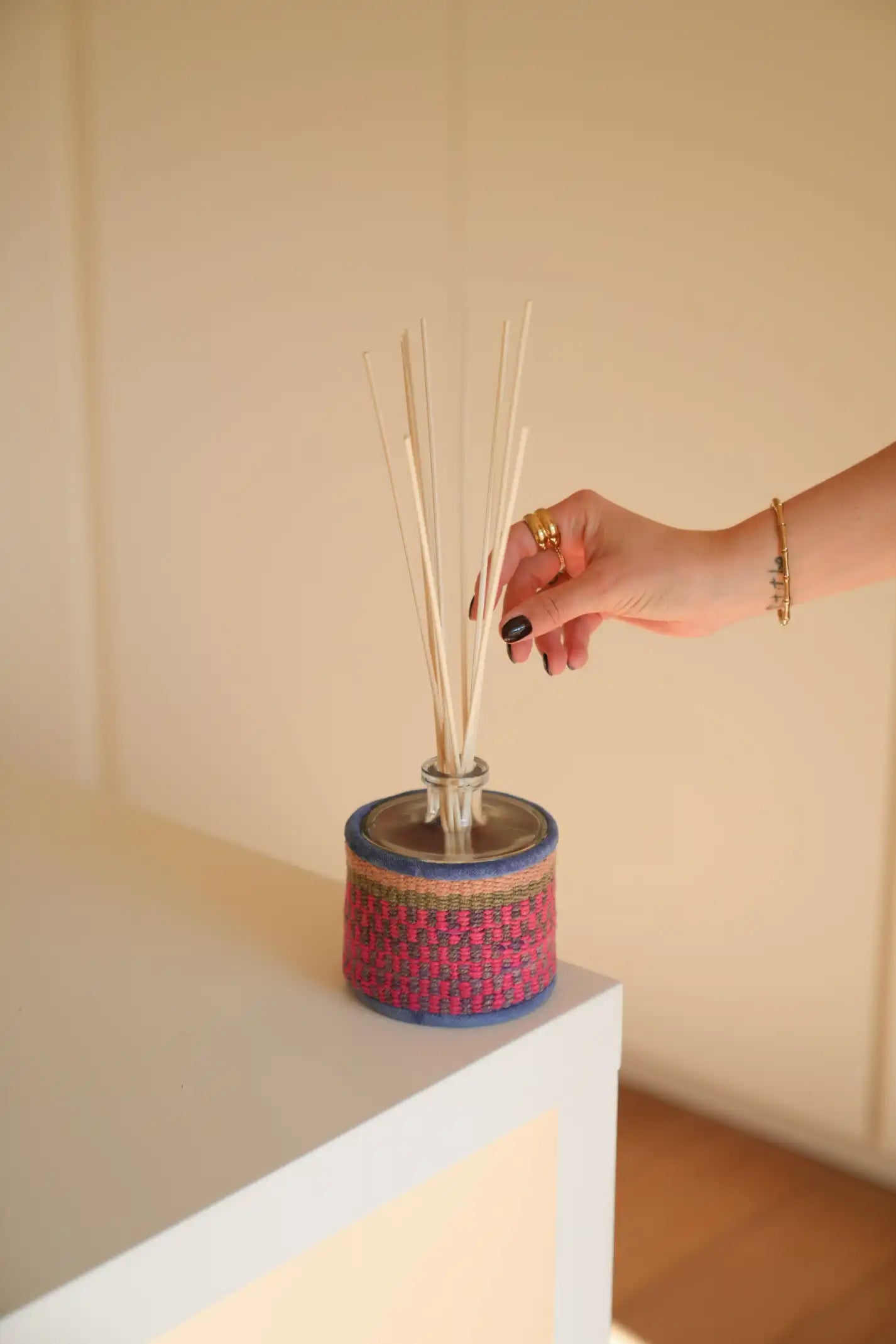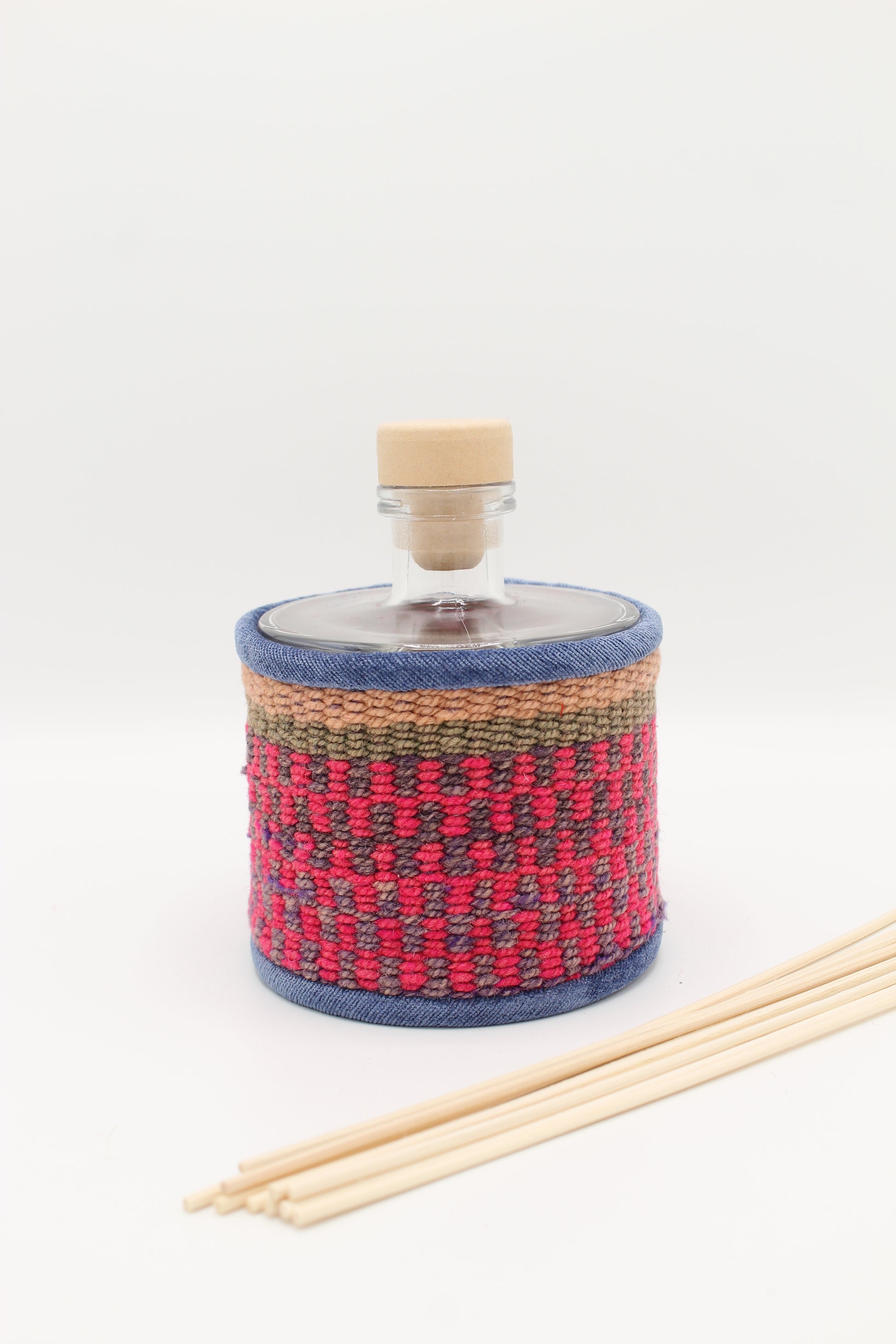 This diffuser is made from scraps of wool fabric, hand-woven in the mountains of the Andes. Inspired by the bright colors of Andean civilizations, each diffuser reflects the traditional know-how of Quechua women. Thanks to the use of reclaimed fabrics, each piece is exclusive and unique.