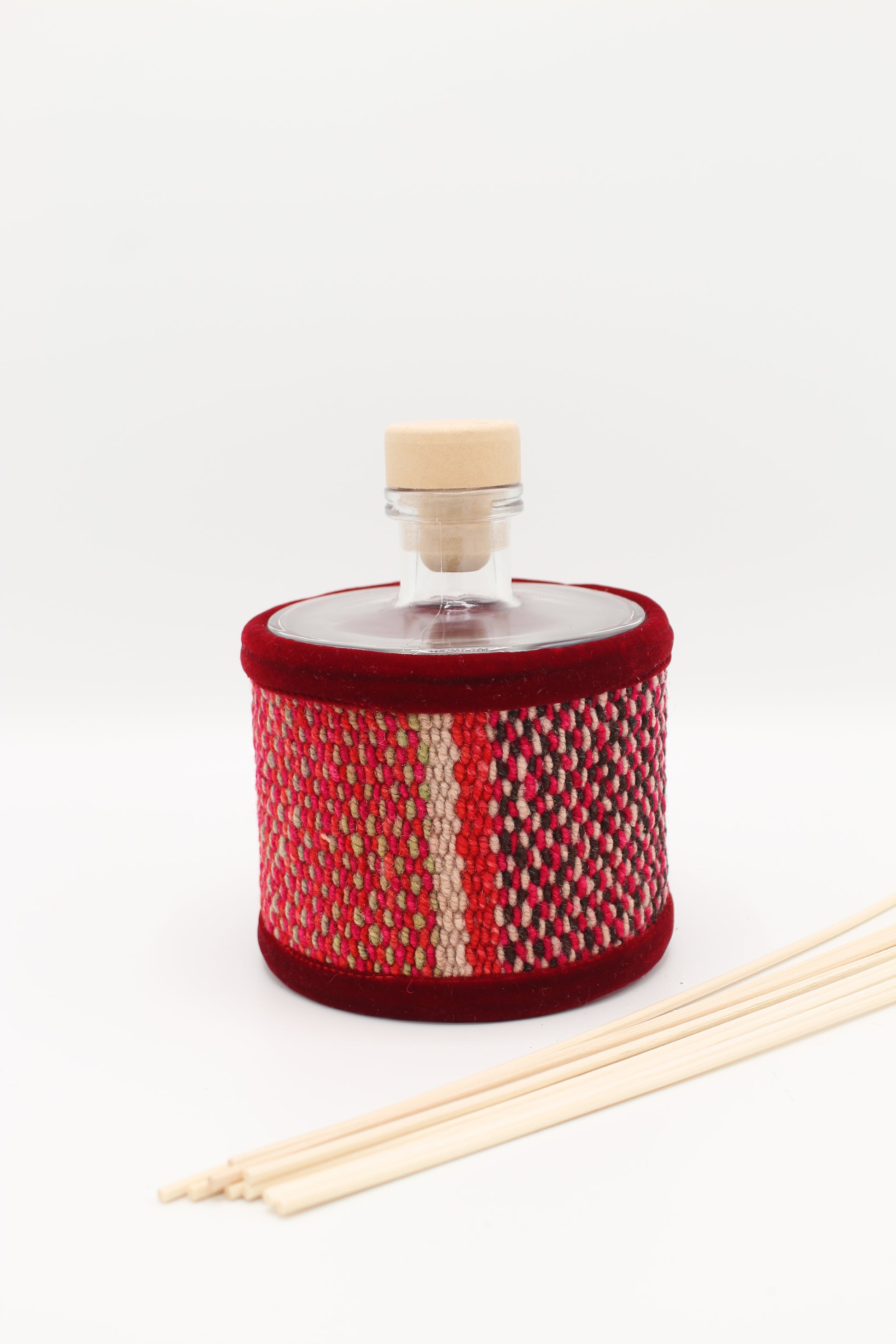 This diffuser is made from scraps of wool fabric, hand-woven in the mountains of the Andes. Inspired by the bright colors of Andean civilizations, each diffuser reflects the traditional know-how of Quechua women. Thanks to the use of reclaimed fabrics, each piece is exclusive and unique.