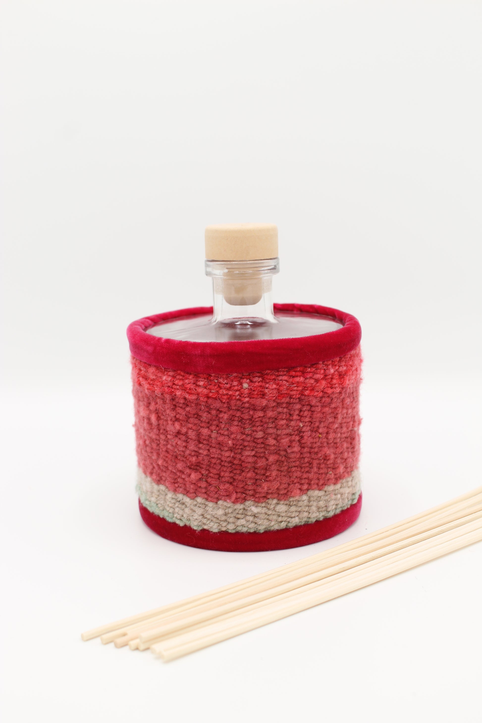 This diffuser is made from scraps of wool fabric, hand-woven in the mountains of the Andes. Inspired by the bright colors of Andean civilizations, each diffuser reflects the traditional know-how of Quechua women. Thanks to the use of reclaimed fabrics, each piece is exclusive and unique.