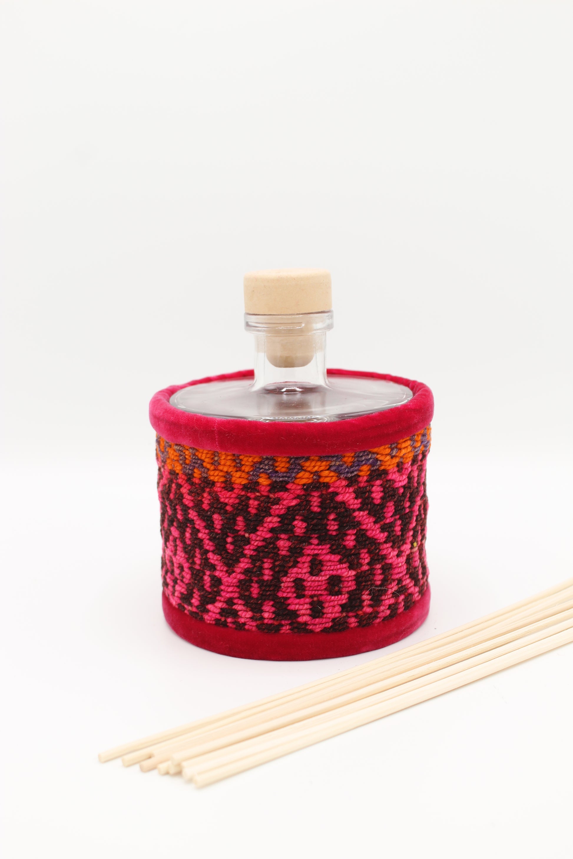 This diffuser is made from scraps of wool fabric, hand-woven in the mountains of the Andes. Inspired by the bright colors of Andean civilizations, each diffuser reflects the traditional know-how of Quechua women. Thanks to the use of reclaimed fabrics, each piece is exclusive and unique.