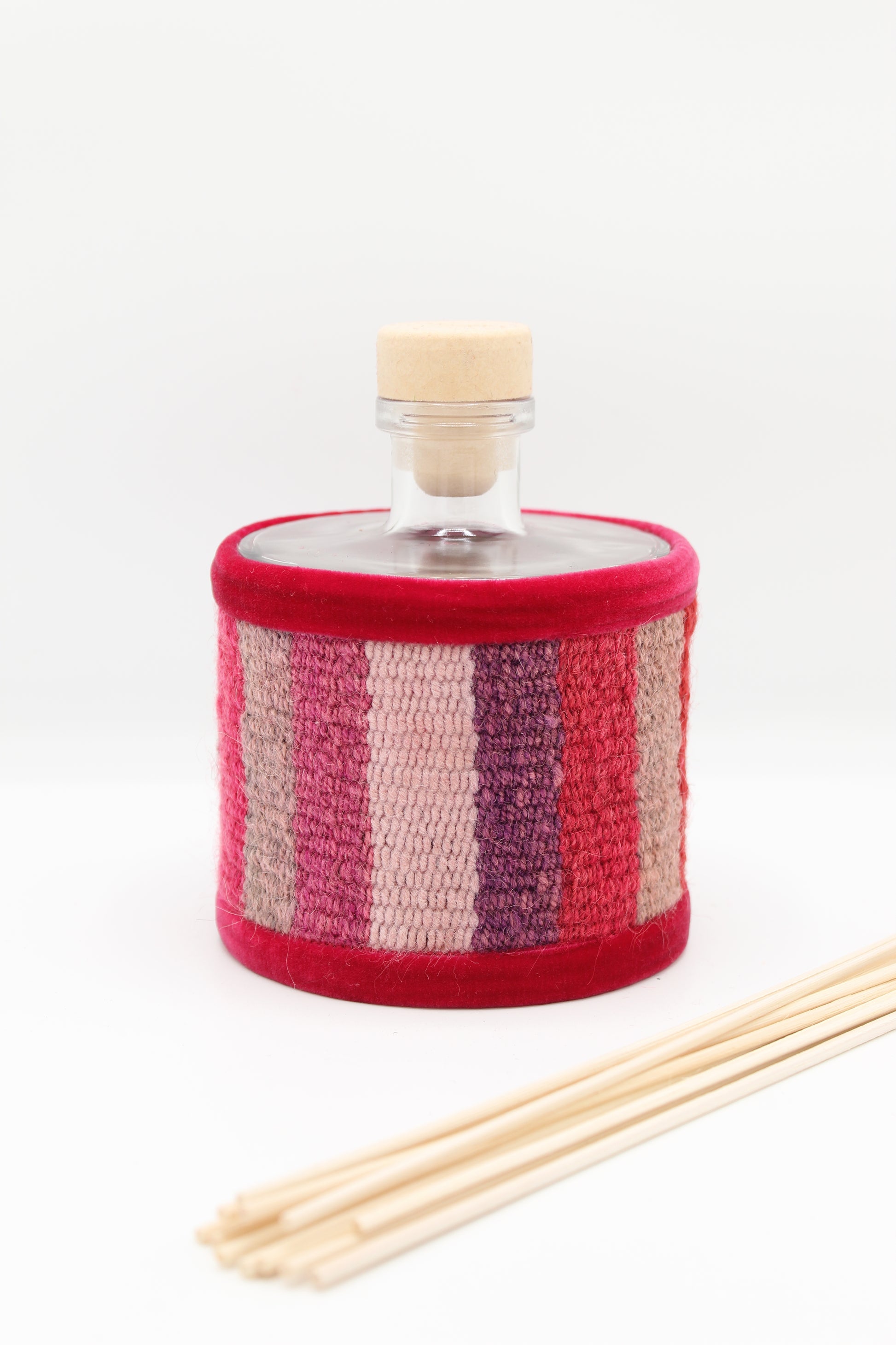 This diffuser is made from scraps of wool fabric, hand-woven in the mountains of the Andes. Inspired by the bright colors of Andean civilizations, each diffuser reflects the traditional know-how of Quechua women. Thanks to the use of reclaimed fabrics, each piece is exclusive and unique.