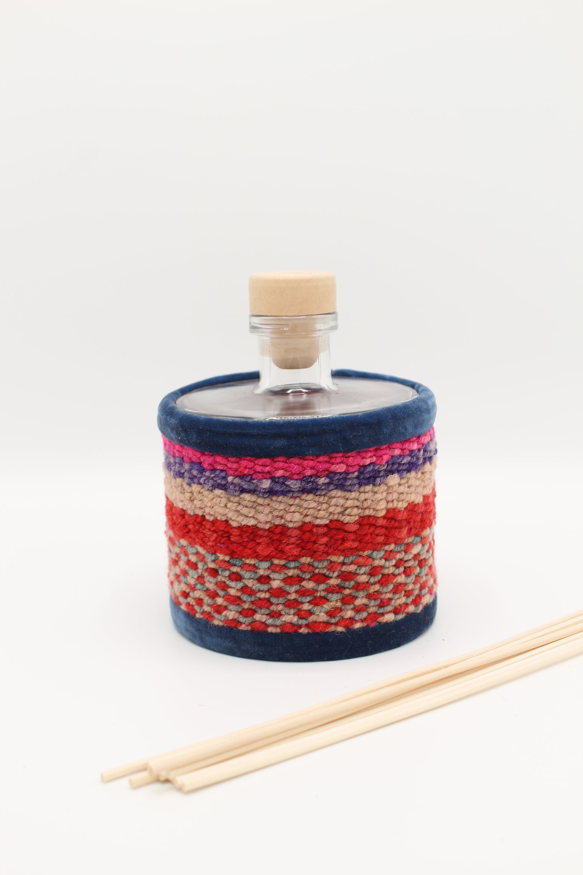 This diffuser is made from scraps of wool fabric, hand-woven in the mountains of the Andes. Inspired by the bright colors of Andean civilizations, each diffuser reflects the traditional know-how of Quechua women. Thanks to the use of reclaimed fabrics, each piece is exclusive and unique.