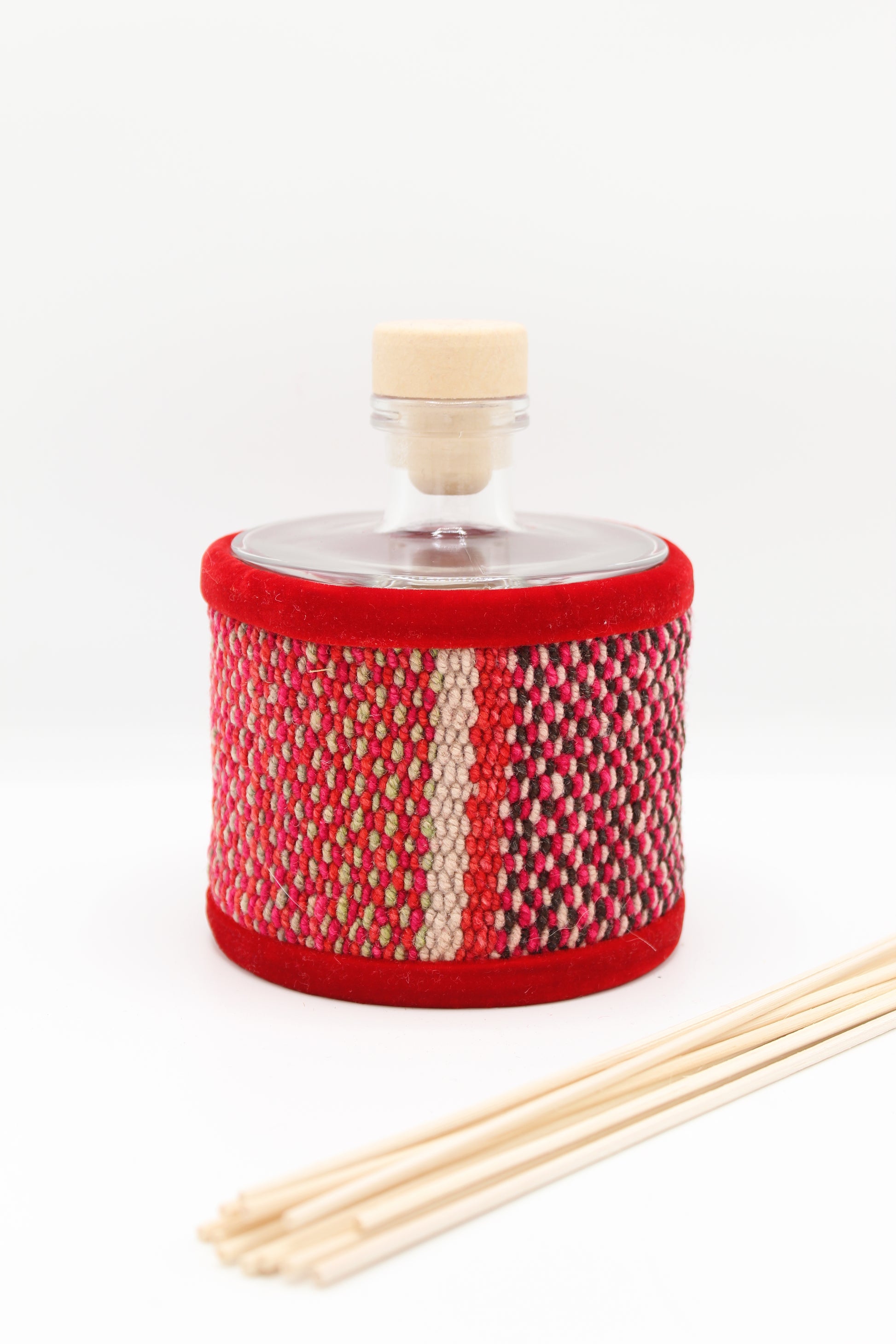 This diffuser is made from scraps of wool fabric, hand-woven in the mountains of the Andes. Inspired by the bright colors of Andean civilizations, each diffuser reflects the traditional know-how of Quechua women. Thanks to the use of reclaimed fabrics, each piece is exclusive and unique.