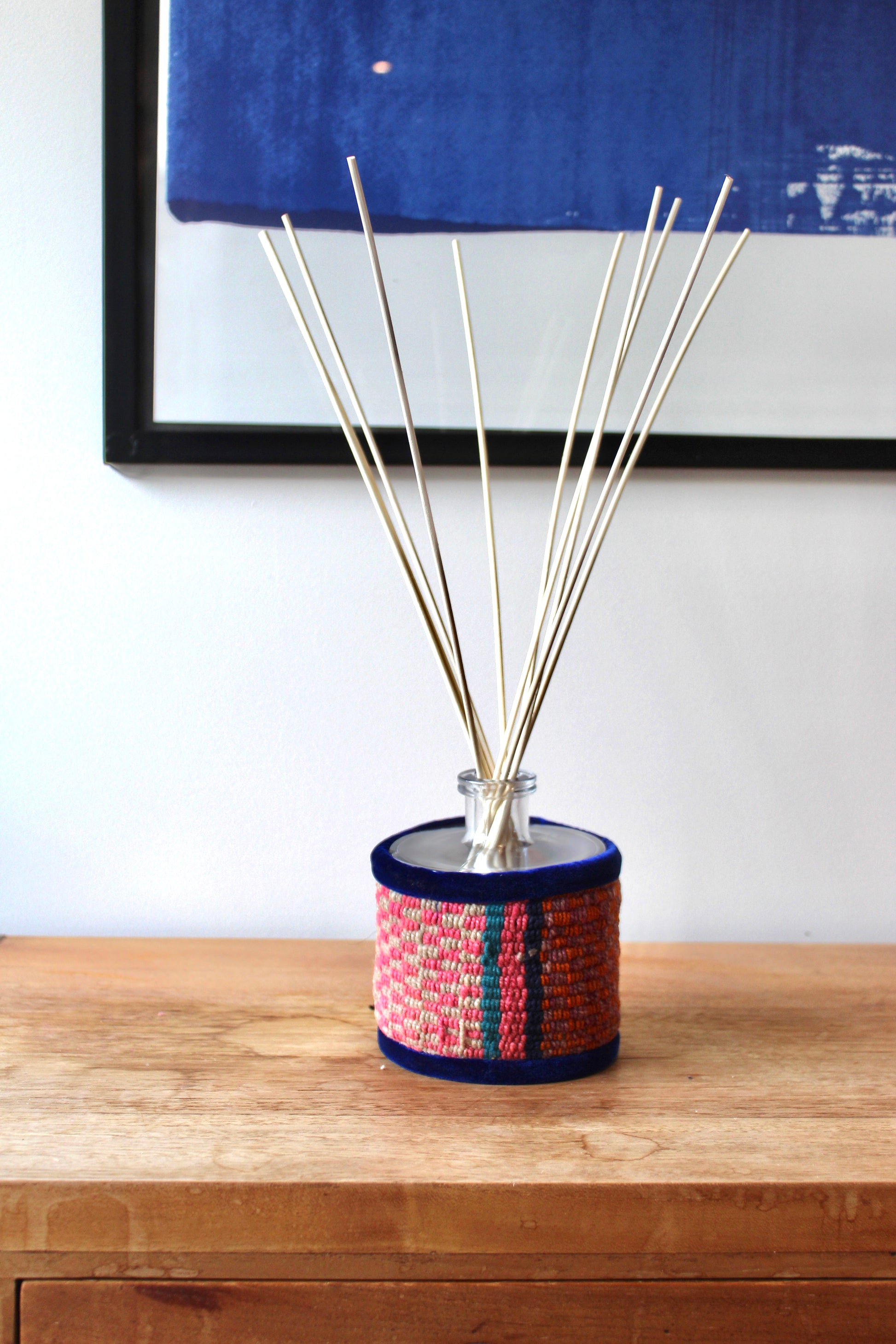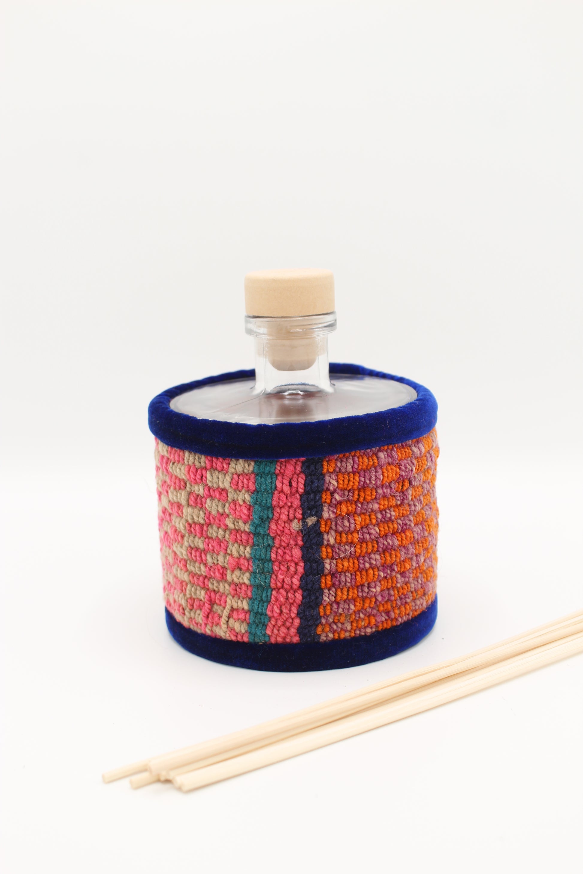 This diffuser is made from scraps of wool fabric, hand-woven in the mountains of the Andes. Inspired by the bright colors of Andean civilizations, each diffuser reflects the traditional know-how of Quechua women. Thanks to the use of reclaimed fabrics, each piece is exclusive and unique.