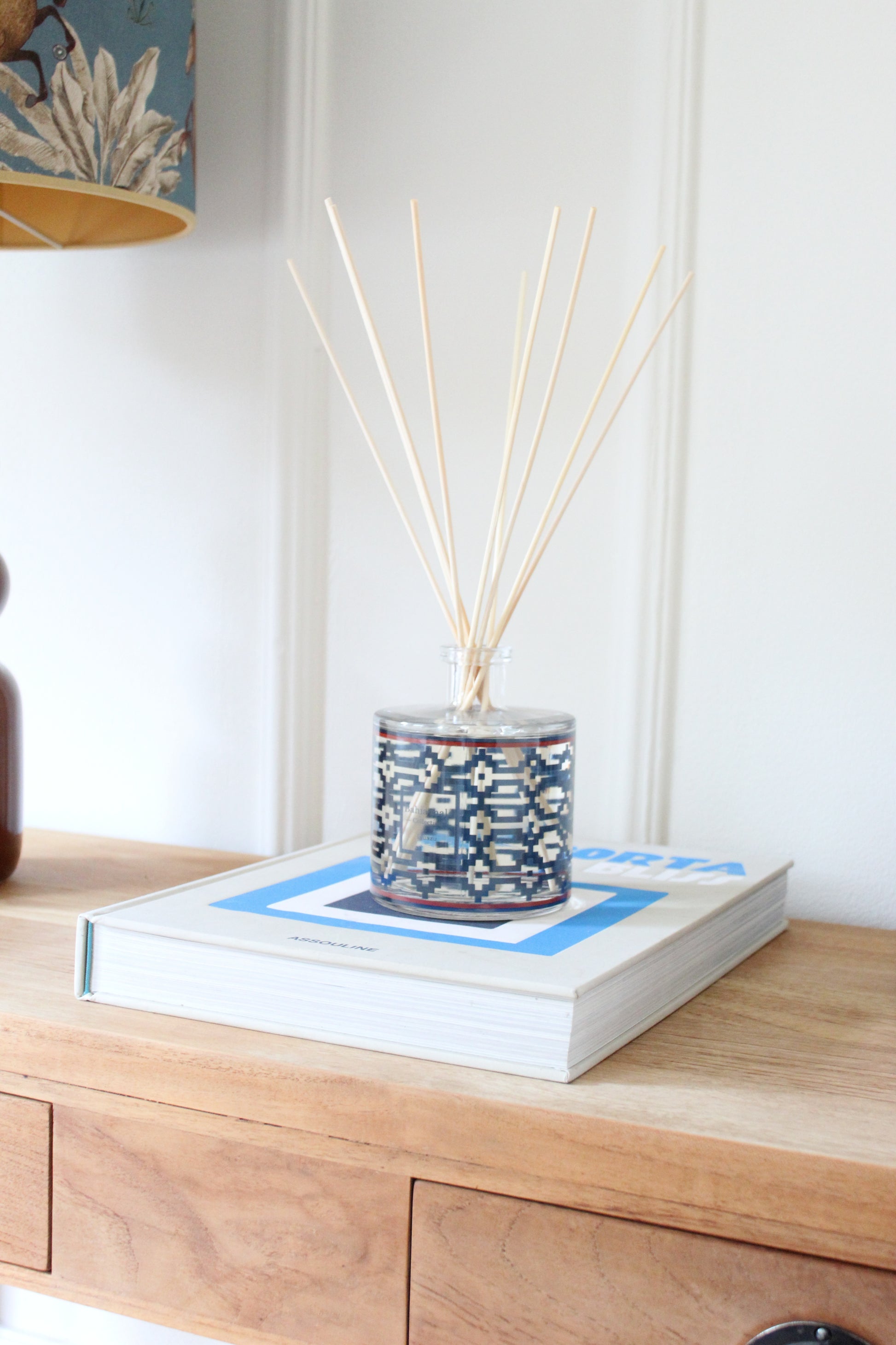 Le flacon mesure 12 cm de hauteur sur 10 cm de largeur. Une fois les bâtonnets placés, le diffuseur mesure 35 cm de hauteur. Il contient 500 ml de parfum.