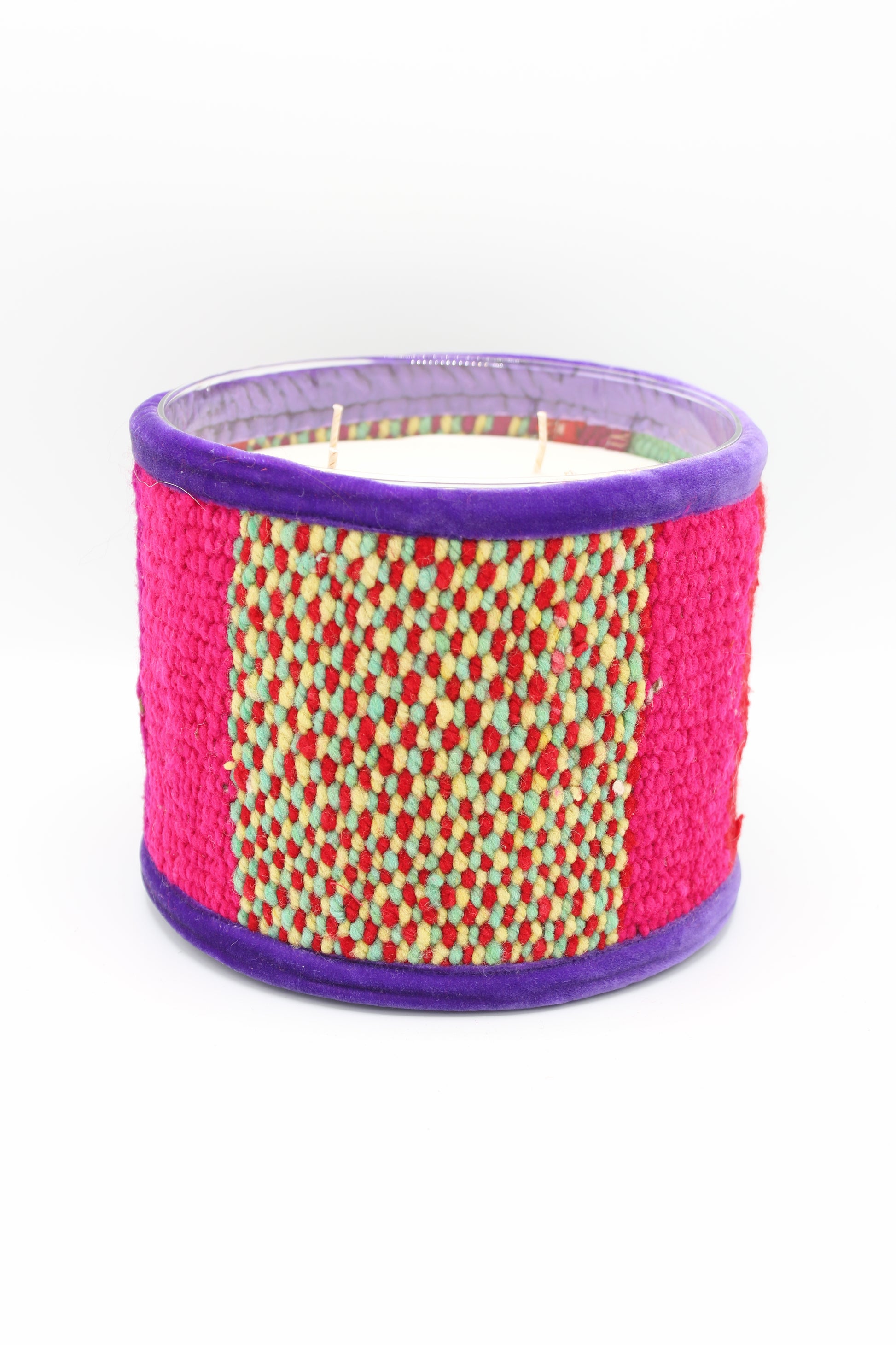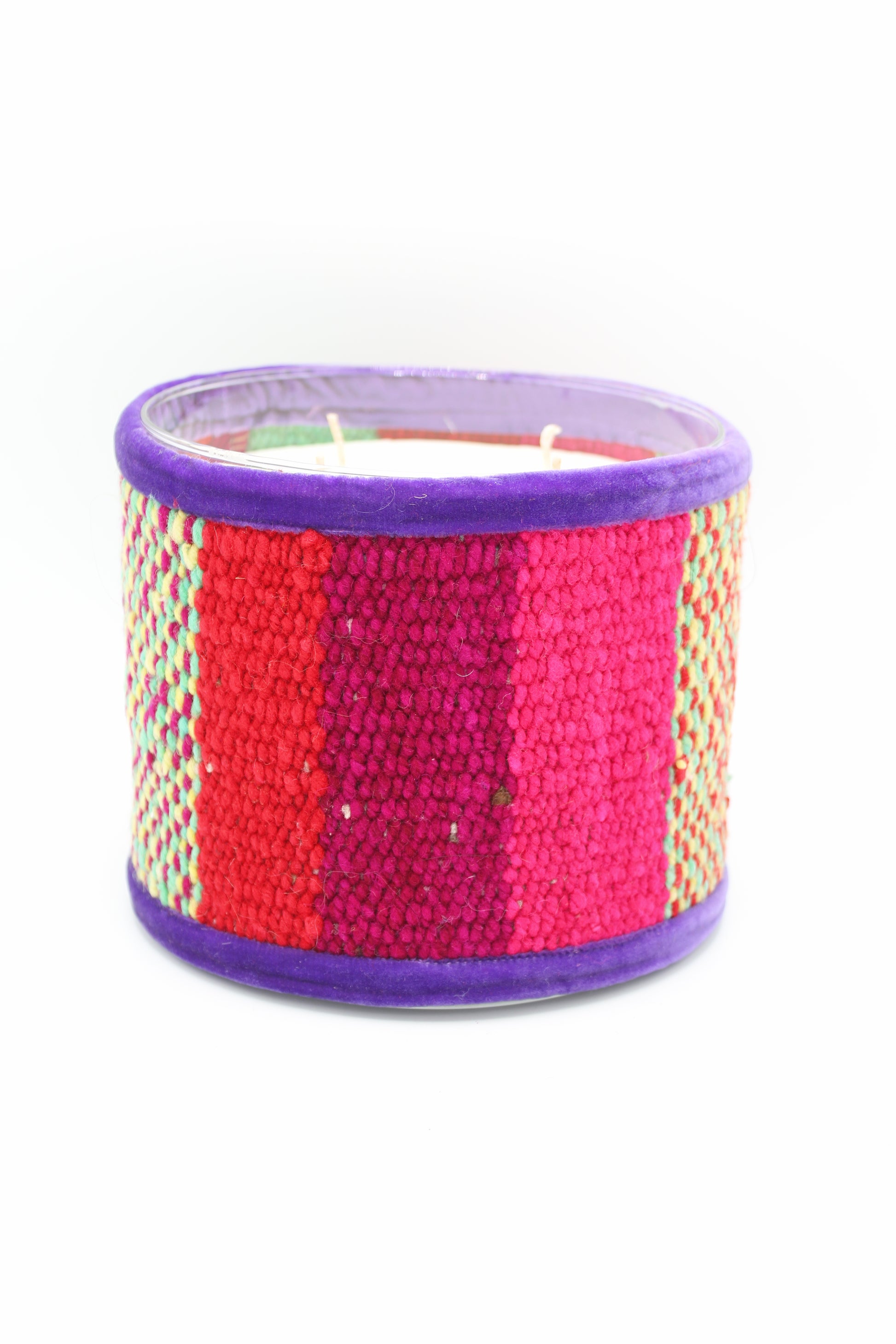 Cette bougie est fabriquée à partir de chutes de tissus en laine, tissés à la main dans les montagnes de la Cordillère des Andes. Inspirée par les couleurs vives des civilisations andines, chaque bougie reflète le savoir-faire traditionnel des femmes Quechua. Grâce à l'utilisation de tissus récupérés, chaque pièce est exclusive et unique.