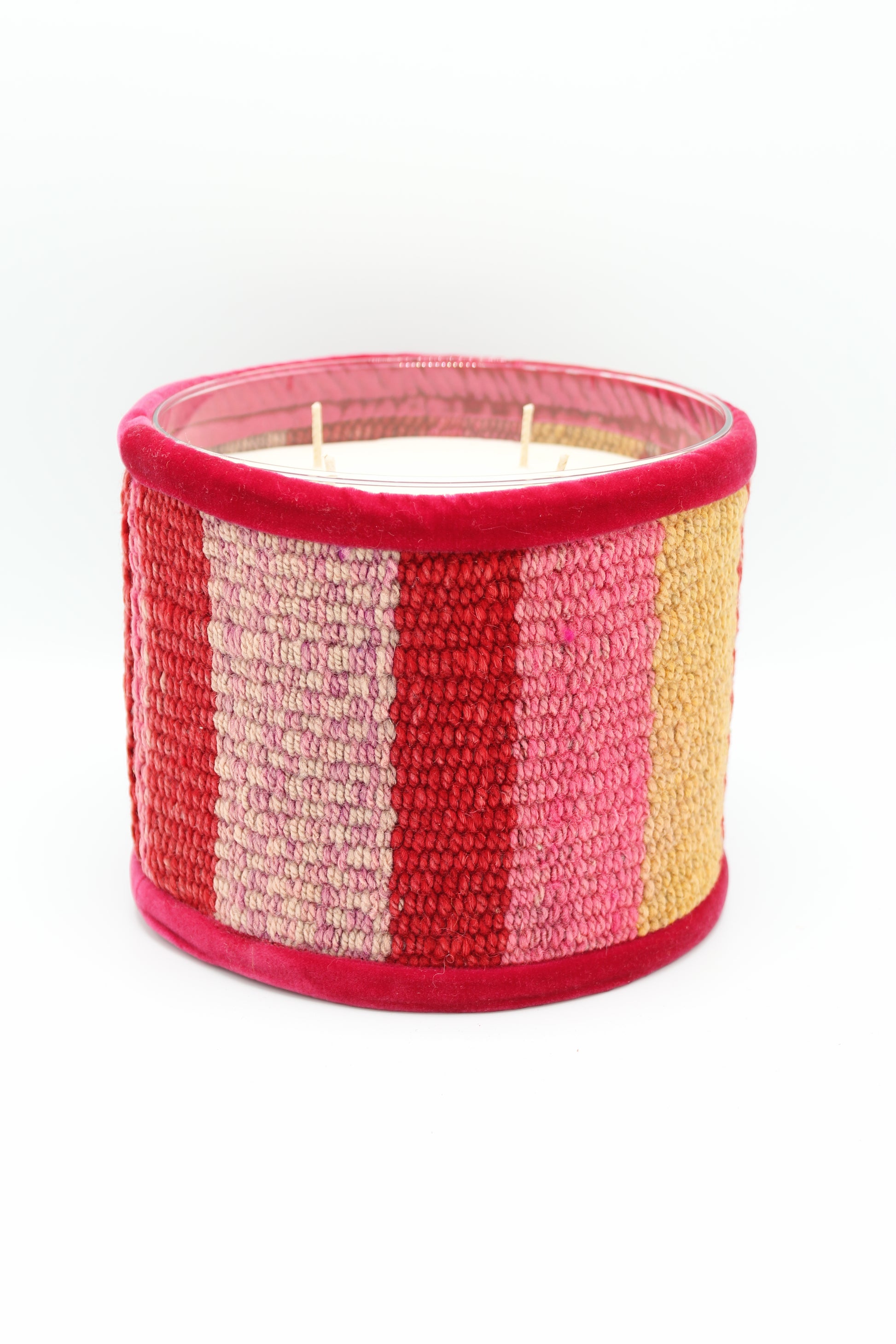 Cette bougie est fabriquée à partir de chutes de tissus en laine, tissés à la main dans les montagnes de la Cordillère des Andes. Inspirée par les couleurs vives des civilisations andines, chaque bougie reflète le savoir-faire traditionnel des femmes Quechua. Grâce à l'utilisation de tissus récupérés, chaque pièce est exclusive et unique.
