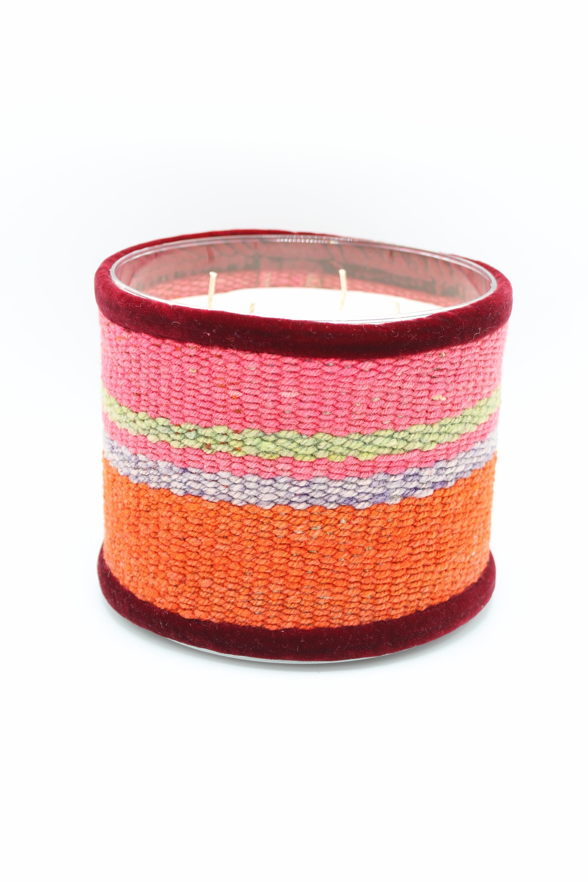 Cette bougie est fabriquée à partir de chutes de tissus en laine, tissés à la main dans les montagnes de la Cordillère des Andes. Inspirée par les couleurs vives des civilisations andines, chaque bougie reflète le savoir-faire traditionnel des femmes Quechua. Grâce à l'utilisation de tissus récupérés, chaque pièce est exclusive et unique.