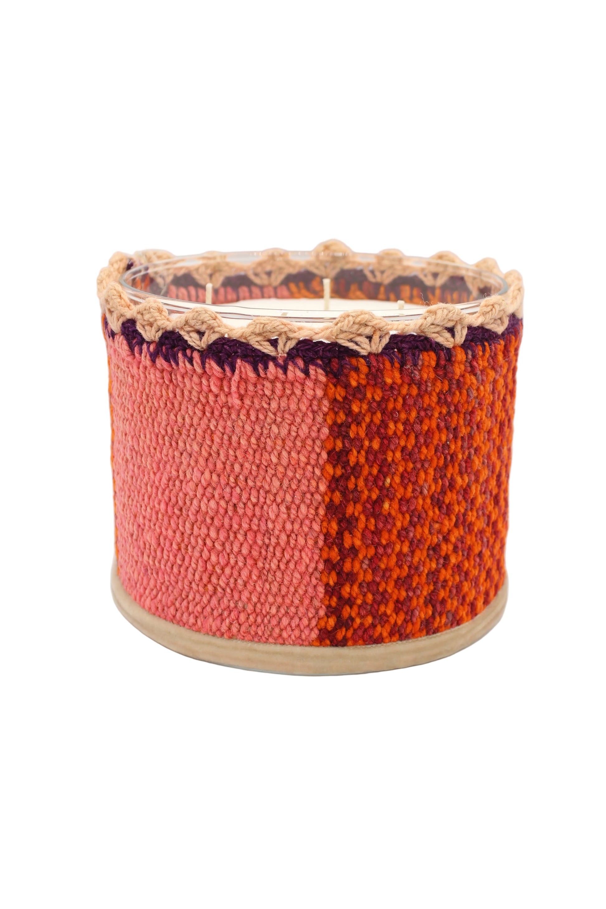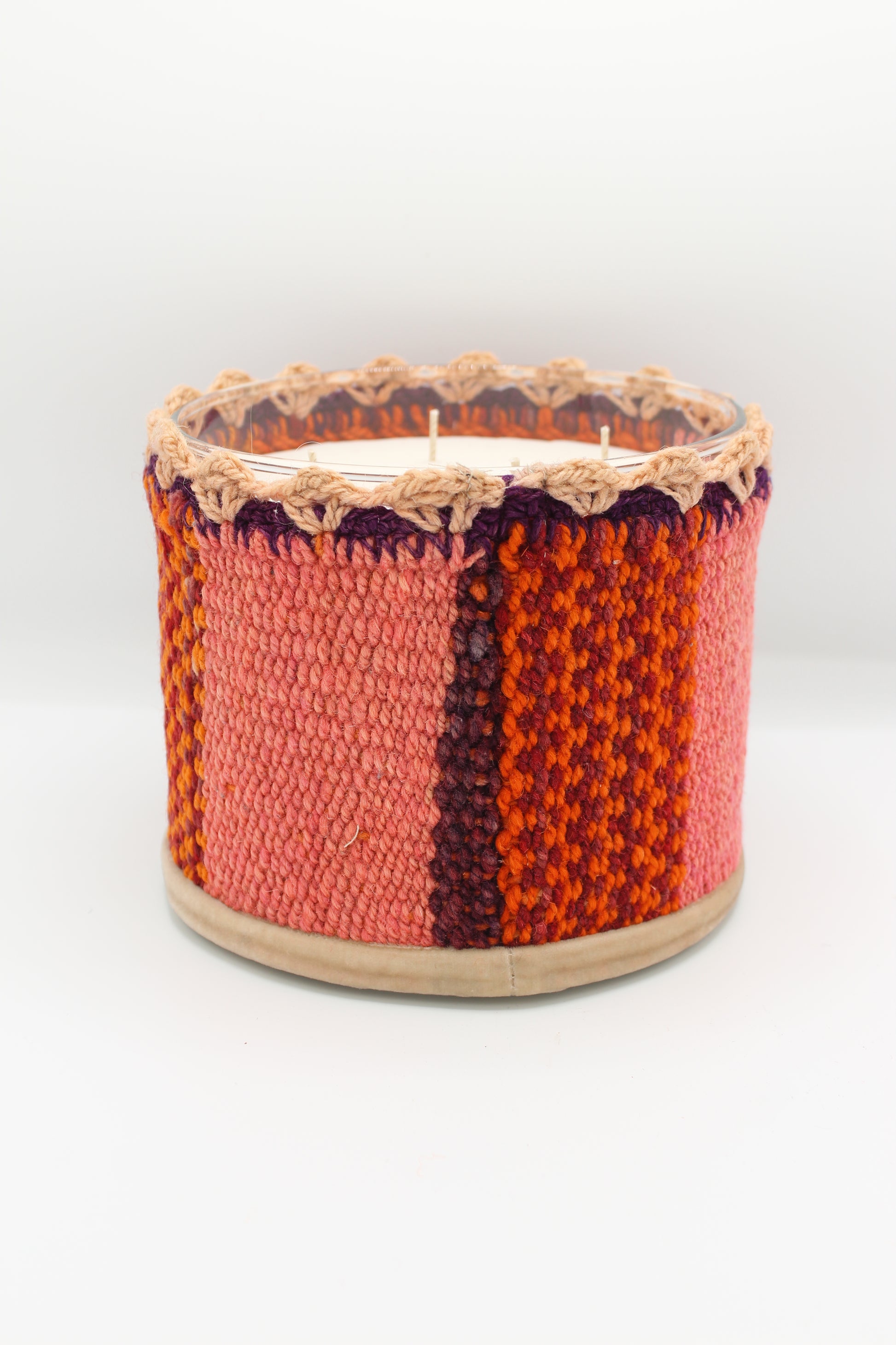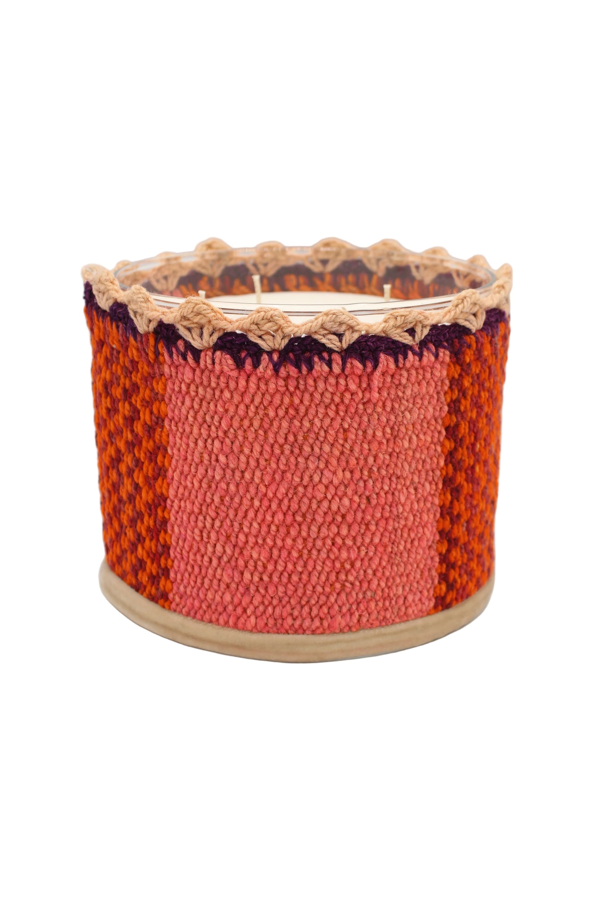 Cette bougie est fabriquée à partir de chutes de tissus en laine, tissés à la main dans les montagnes de la Cordillère des Andes. Inspirée par les couleurs vives des civilisations andines, chaque bougie reflète le savoir-faire traditionnel des femmes Quechua. Grâce à l'utilisation de tissus récupérés, chaque pièce est exclusive et unique.