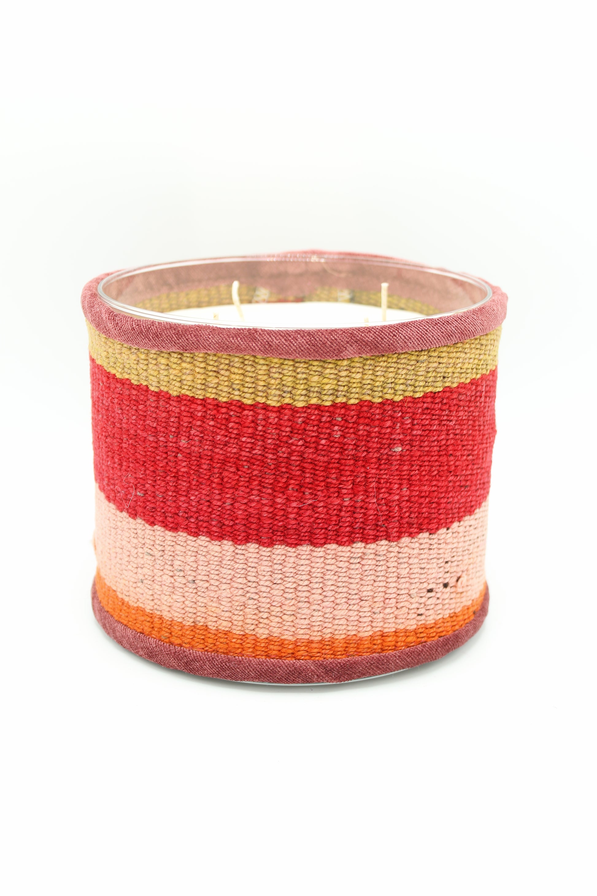 Cette bougie est fabriquée à partir de chutes de tissus en laine, tissés à la main dans les montagnes de la Cordillère des Andes. Inspirée par les couleurs vives des civilisations andines, chaque bougie reflète le savoir-faire traditionnel des femmes Quechua. Grâce à l'utilisation de tissus récupérés, chaque pièce est exclusive et unique.