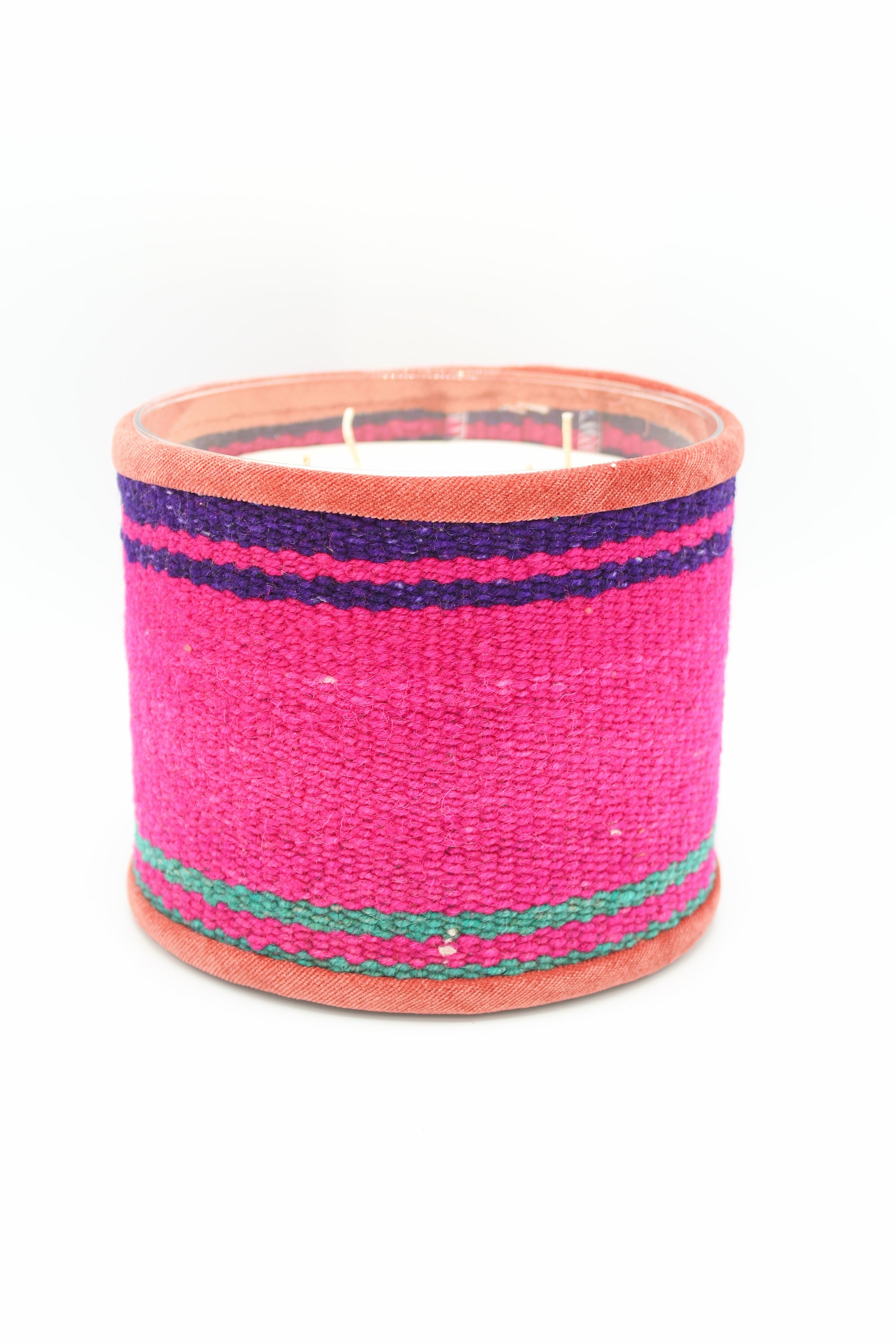 Cette bougie est fabriquée à partir de chutes de tissus en laine, tissés à la main dans les montagnes de la Cordillère des Andes. Inspirée par les couleurs vives des civilisations andines, chaque bougie reflète le savoir-faire traditionnel des femmes Quechua. Grâce à l'utilisation de tissus récupérés, chaque pièce est exclusive et unique.