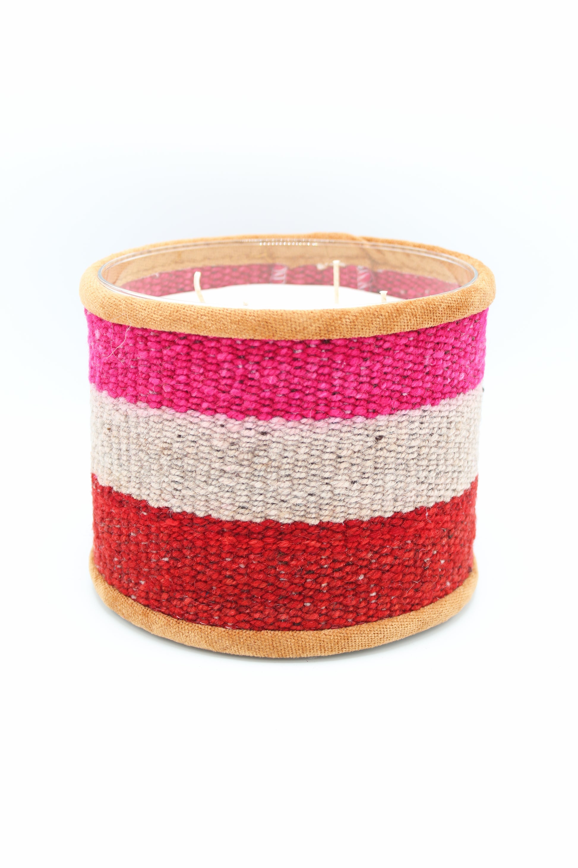 Cette bougie est fabriquée à partir de chutes de tissus en laine, tissés à la main dans les montagnes de la Cordillère des Andes. Inspirée par les couleurs vives des civilisations andines, chaque bougie reflète le savoir-faire traditionnel des femmes Quechua. Grâce à l'utilisation de tissus récupérés, chaque pièce est exclusive et unique.
