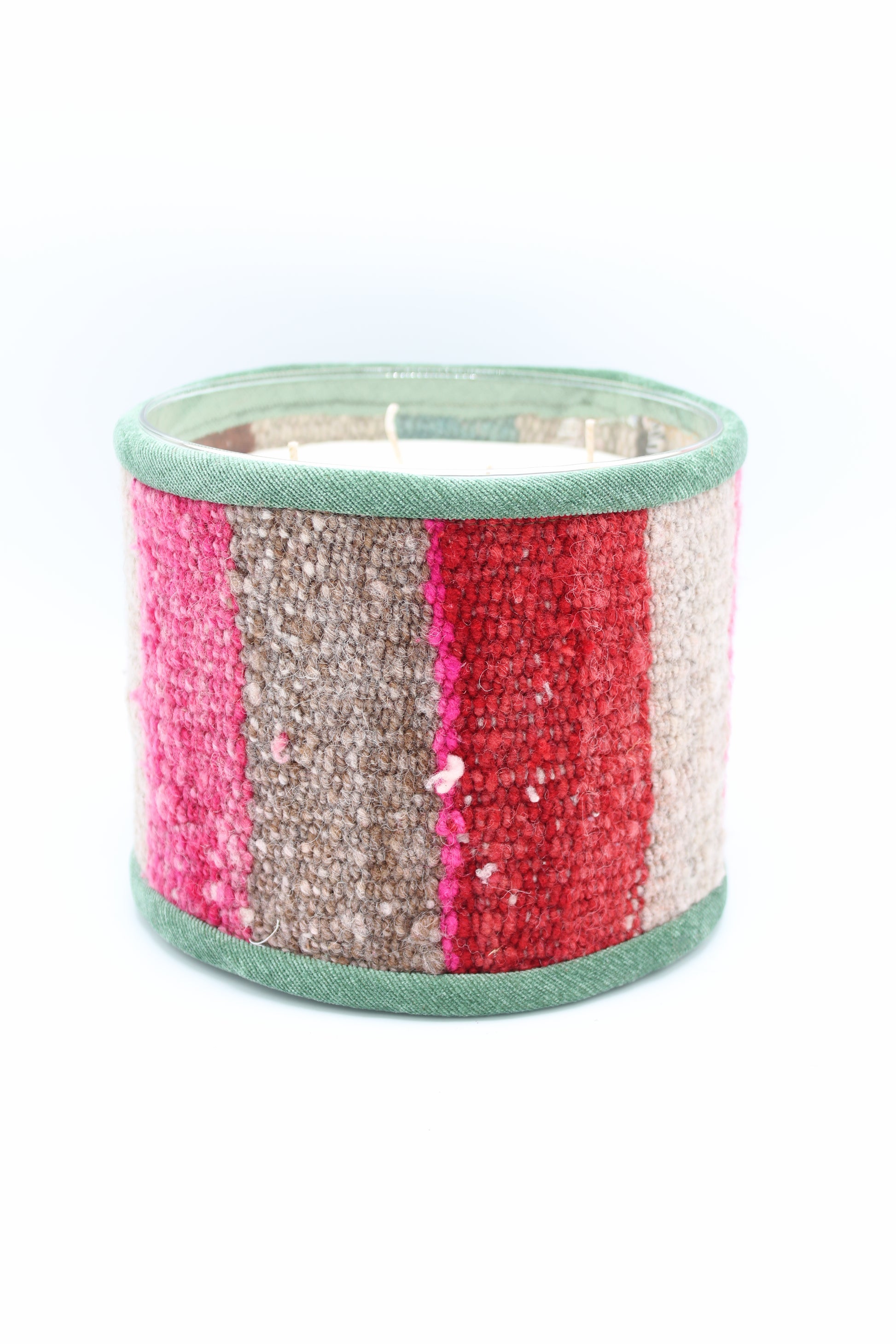 Cette bougie est fabriquée à partir de chutes de tissus en laine, tissés à la main dans les montagnes de la Cordillère des Andes. Inspirée par les couleurs vives des civilisations andines, chaque bougie reflète le savoir-faire traditionnel des femmes Quechua. Grâce à l'utilisation de tissus récupérés, chaque pièce est exclusive et unique.