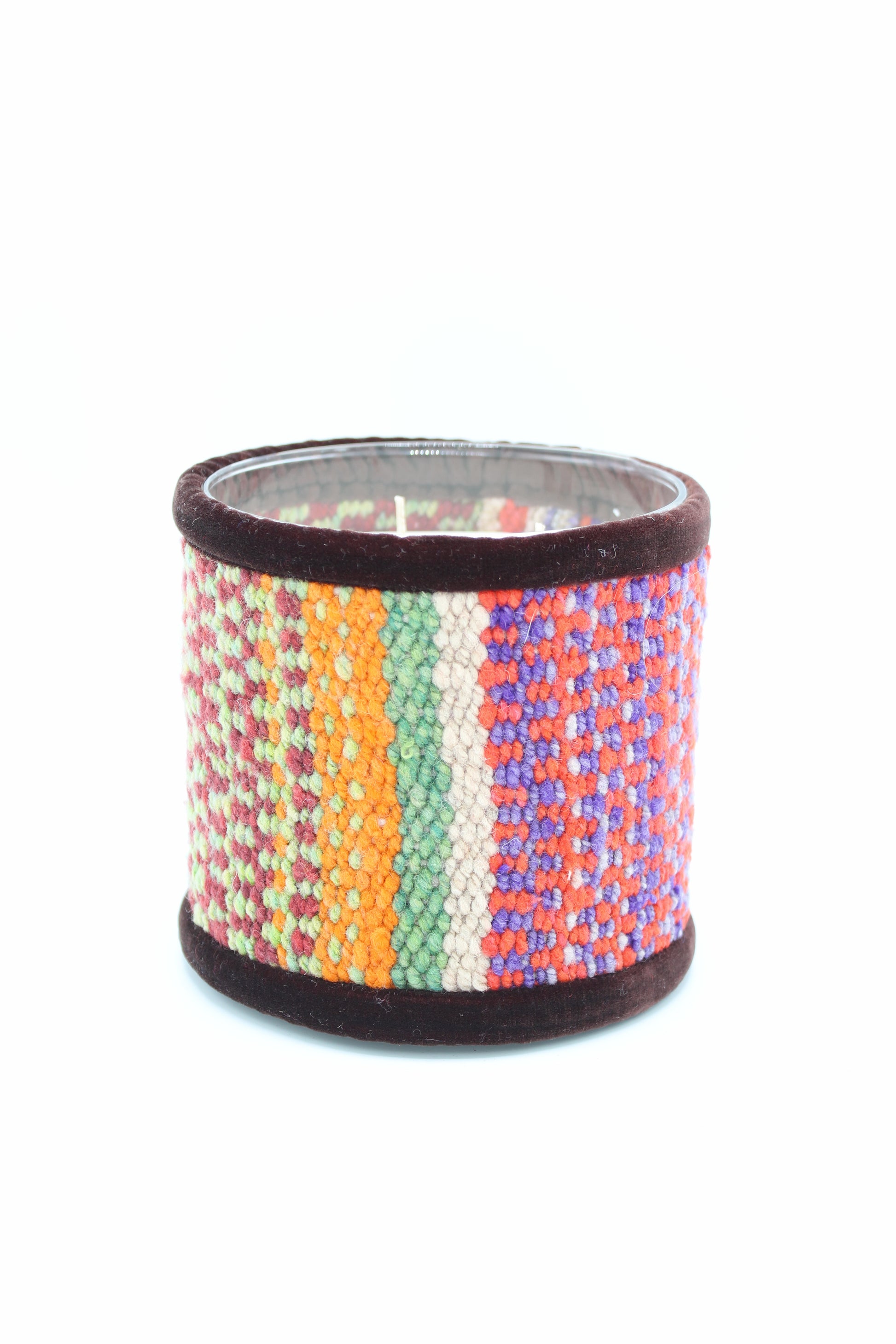 Cette bougie est fabriquée à partir de chutes de tissus en laine, tissés à la main dans les montagnes de la Cordillère des Andes. Inspirée par les couleurs vives des civilisations andines, chaque bougie reflète le savoir-faire traditionnel des femmes Quechua. Grâce à l'utilisation de tissus récupérés, chaque pièce est exclusive et unique.