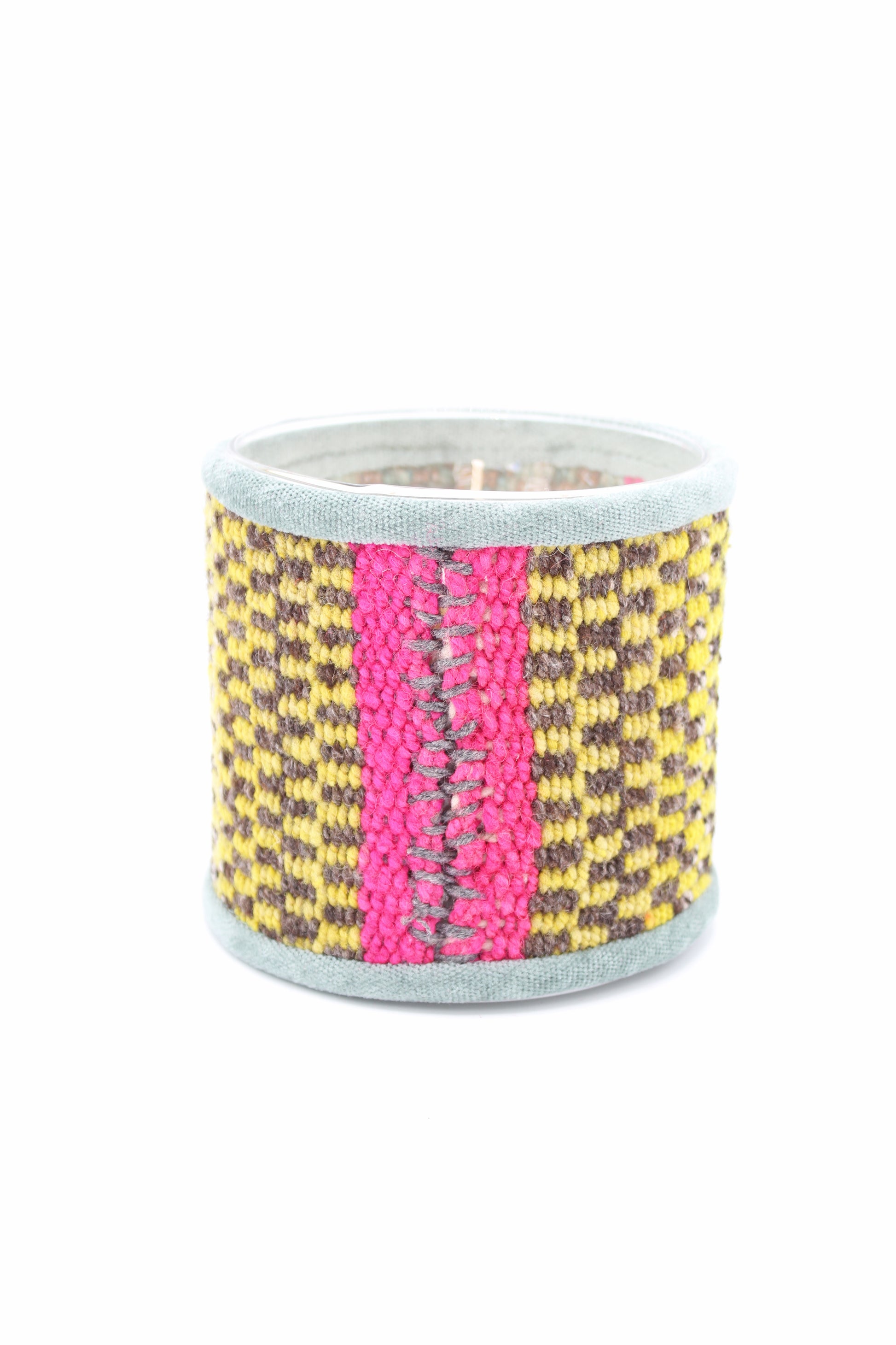 Cette bougie est fabriquée à partir de chutes de tissus en laine, tissés à la main dans les montagnes de la Cordillère des Andes. Inspirée par les couleurs vives des civilisations andines, chaque bougie reflète le savoir-faire traditionnel des femmes Quechua. Grâce à l'utilisation de tissus récupérés, chaque pièce est exclusive et unique.