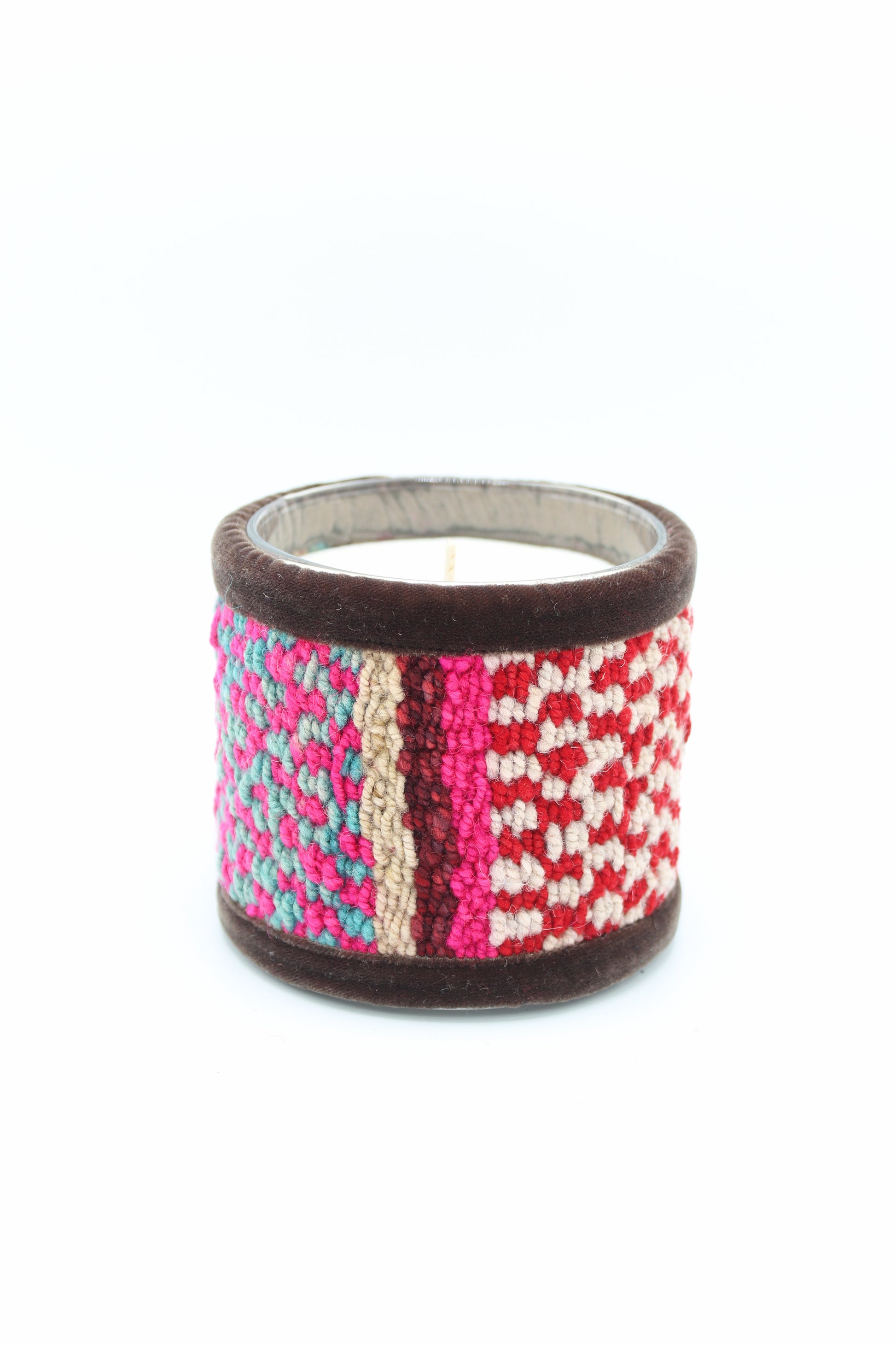 Cette bougie est fabriquée à partir de chutes de tissus en laine, tissés à la main dans les montagnes de la Cordillère des Andes. Inspirée par les couleurs vives des civilisations andines, chaque bougie reflète le savoir-faire traditionnel des femmes Quechua. Grâce à l'utilisation de tissus récupérés, chaque pièce est exclusive et unique.