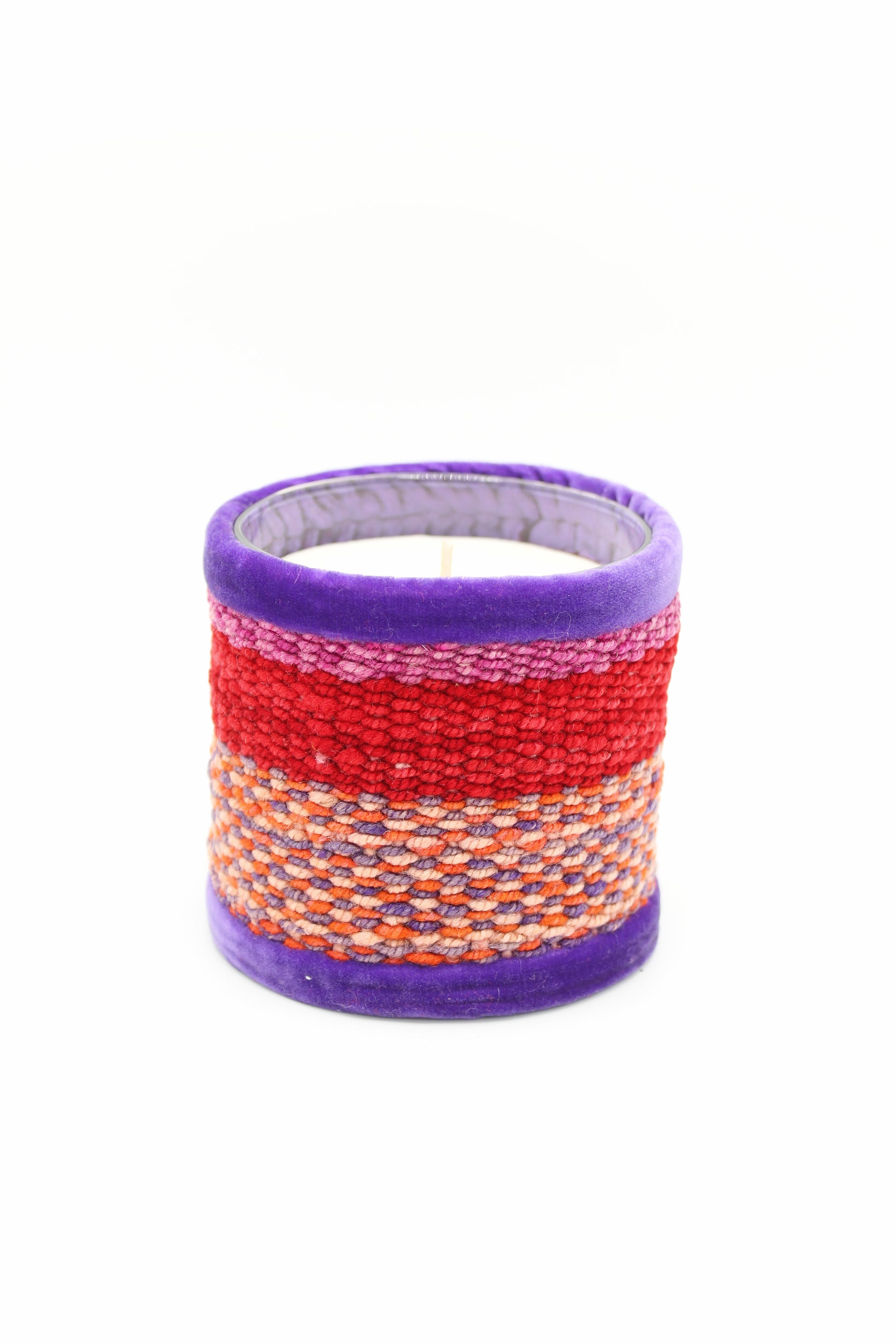 Cette bougie est fabriquée à partir de chutes de tissus en laine, tissés à la main dans les montagnes de la Cordillère des Andes. Inspirée par les couleurs vives des civilisations andines, chaque bougie reflète le savoir-faire traditionnel des femmes Quechua. Grâce à l'utilisation de tissus récupérés, chaque pièce est exclusive et unique.