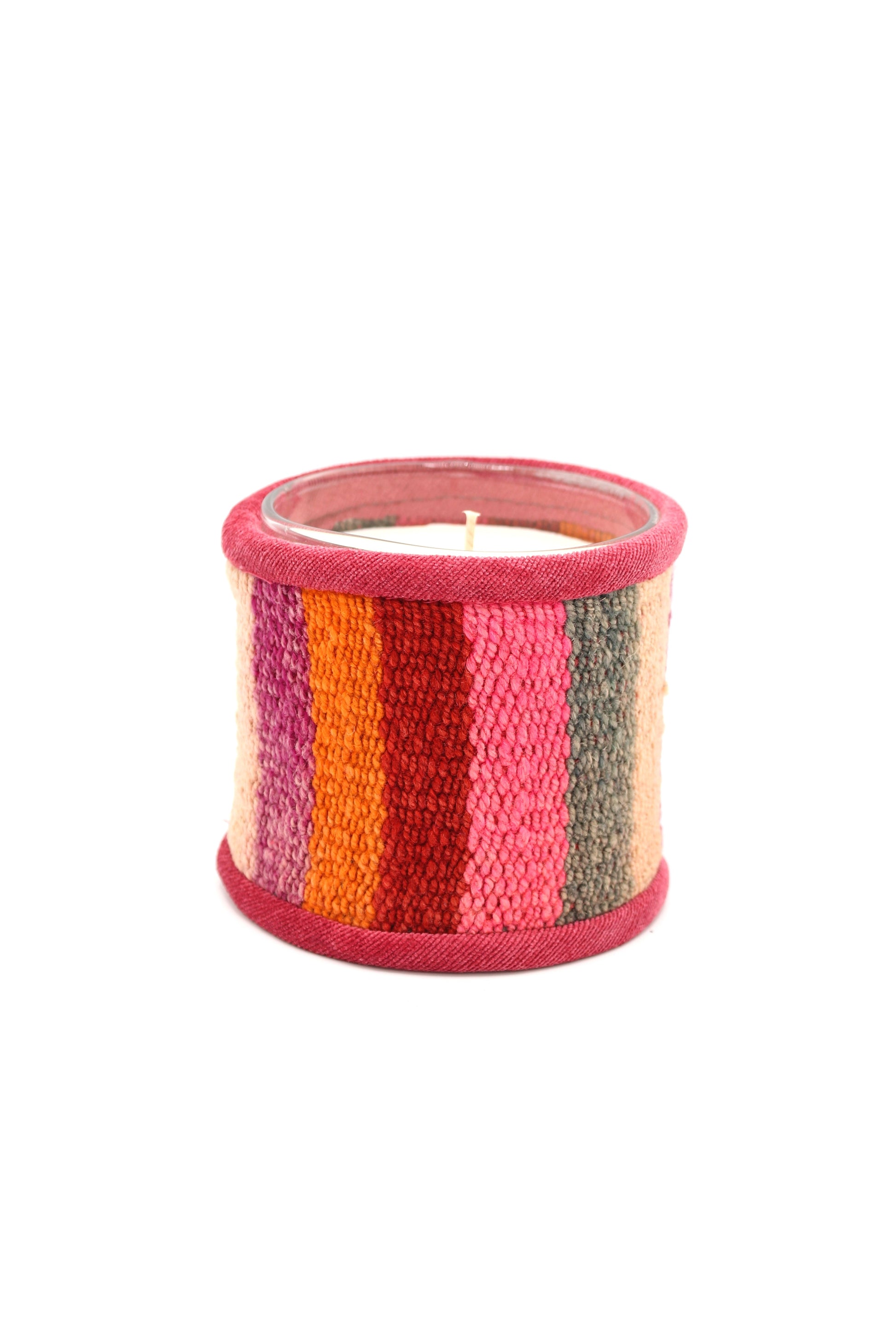 Cette bougie est fabriquée à partir de chutes de tissus en laine, tissés à la main dans les montagnes de la Cordillère des Andes. Inspirée par les couleurs vives des civilisations andines, chaque bougie reflète le savoir-faire traditionnel des femmes Quechua. Grâce à l'utilisation de tissus récupérés, chaque pièce est exclusive et unique.