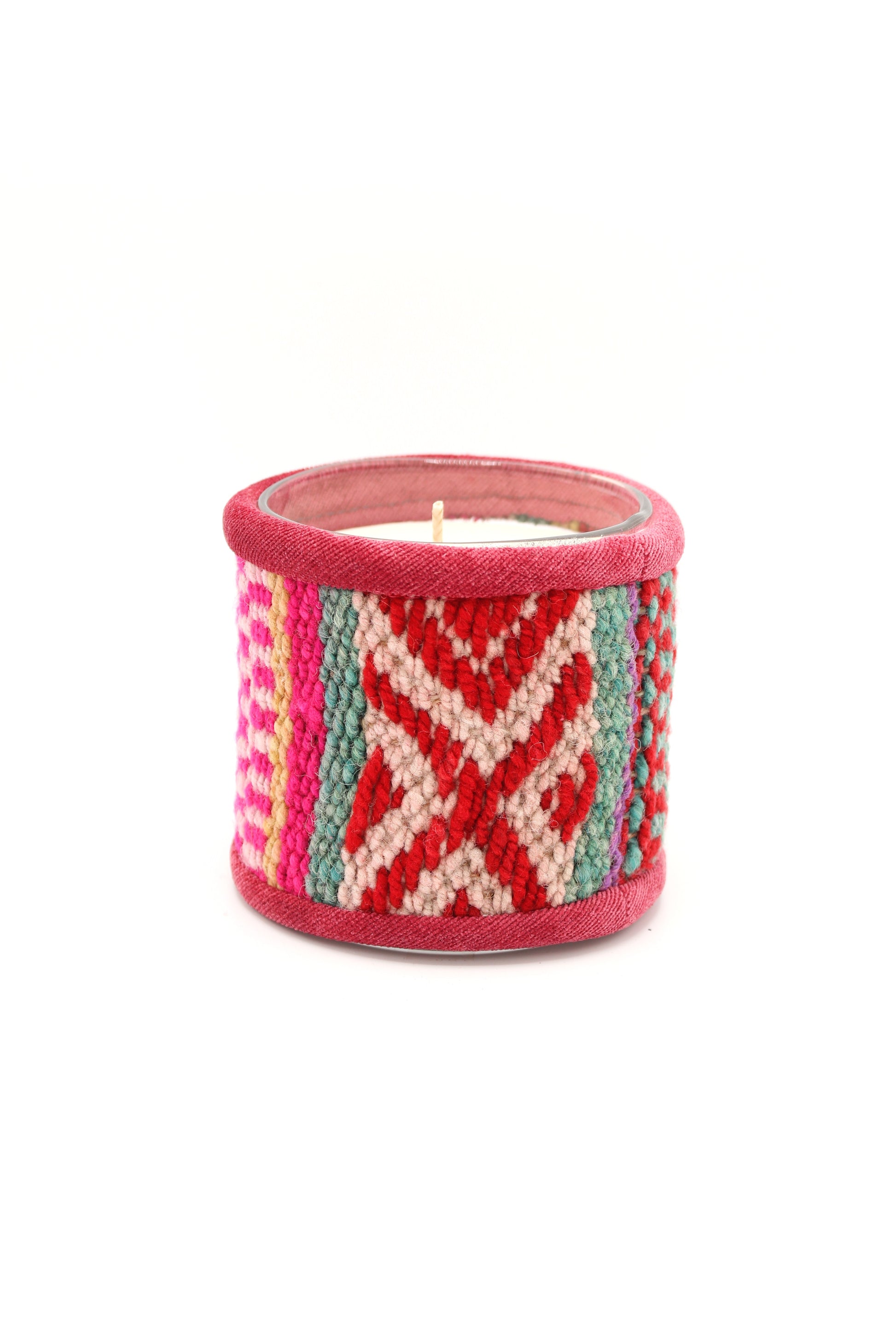 Cette bougie est fabriquée à partir de chutes de tissus en laine, tissés à la main dans les montagnes de la Cordillère des Andes. Inspirée par les couleurs vives des civilisations andines, chaque bougie reflète le savoir-faire traditionnel des femmes Quechua. Grâce à l'utilisation de tissus récupérés, chaque pièce est exclusive et unique.