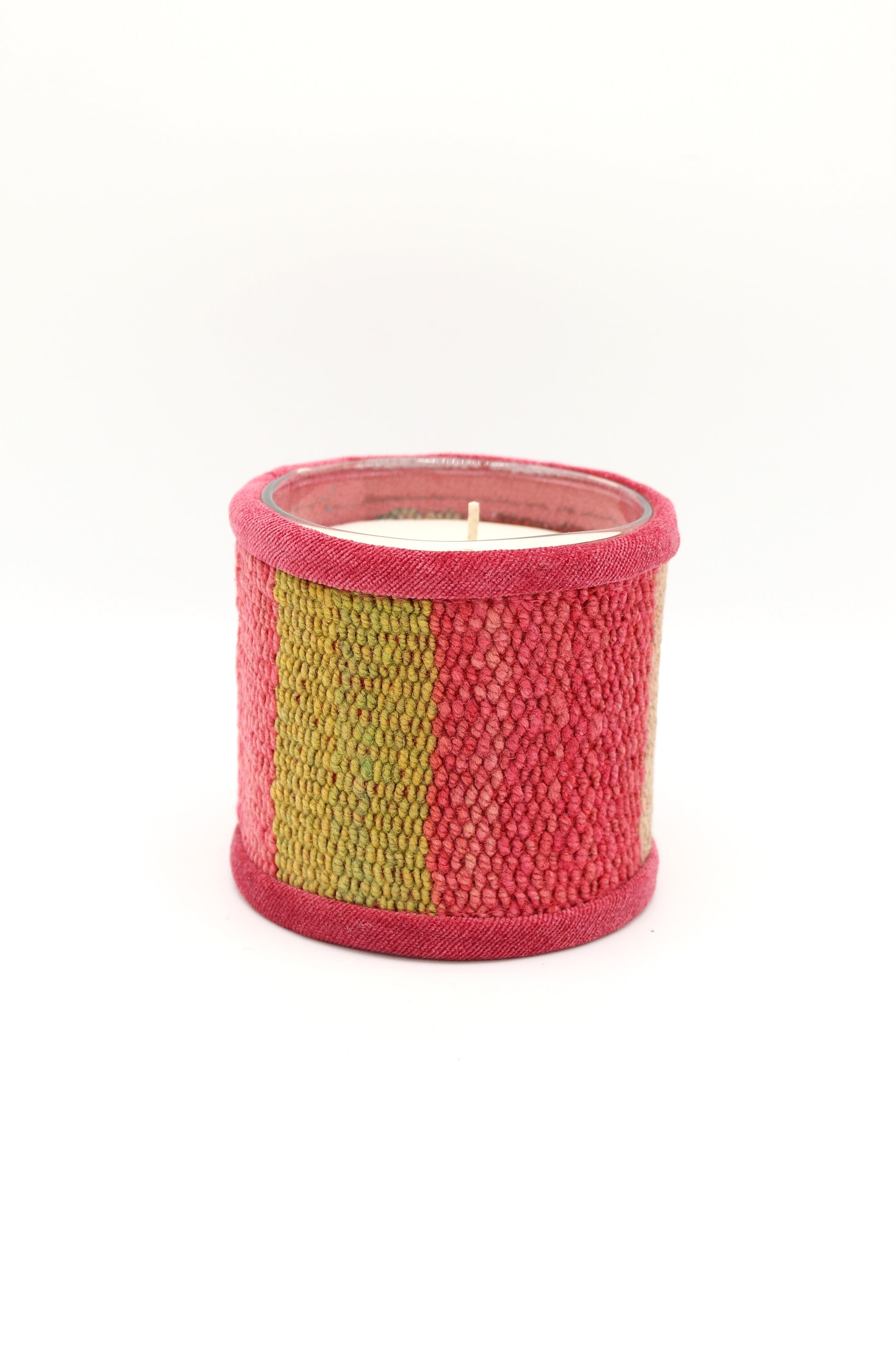 Cette bougie est fabriquée à partir de chutes de tissus en laine, tissés à la main dans les montagnes de la Cordillère des Andes. Inspirée par les couleurs vives des civilisations andines, chaque bougie reflète le savoir-faire traditionnel des femmes Quechua. Grâce à l'utilisation de tissus récupérés, chaque pièce est exclusive et unique.