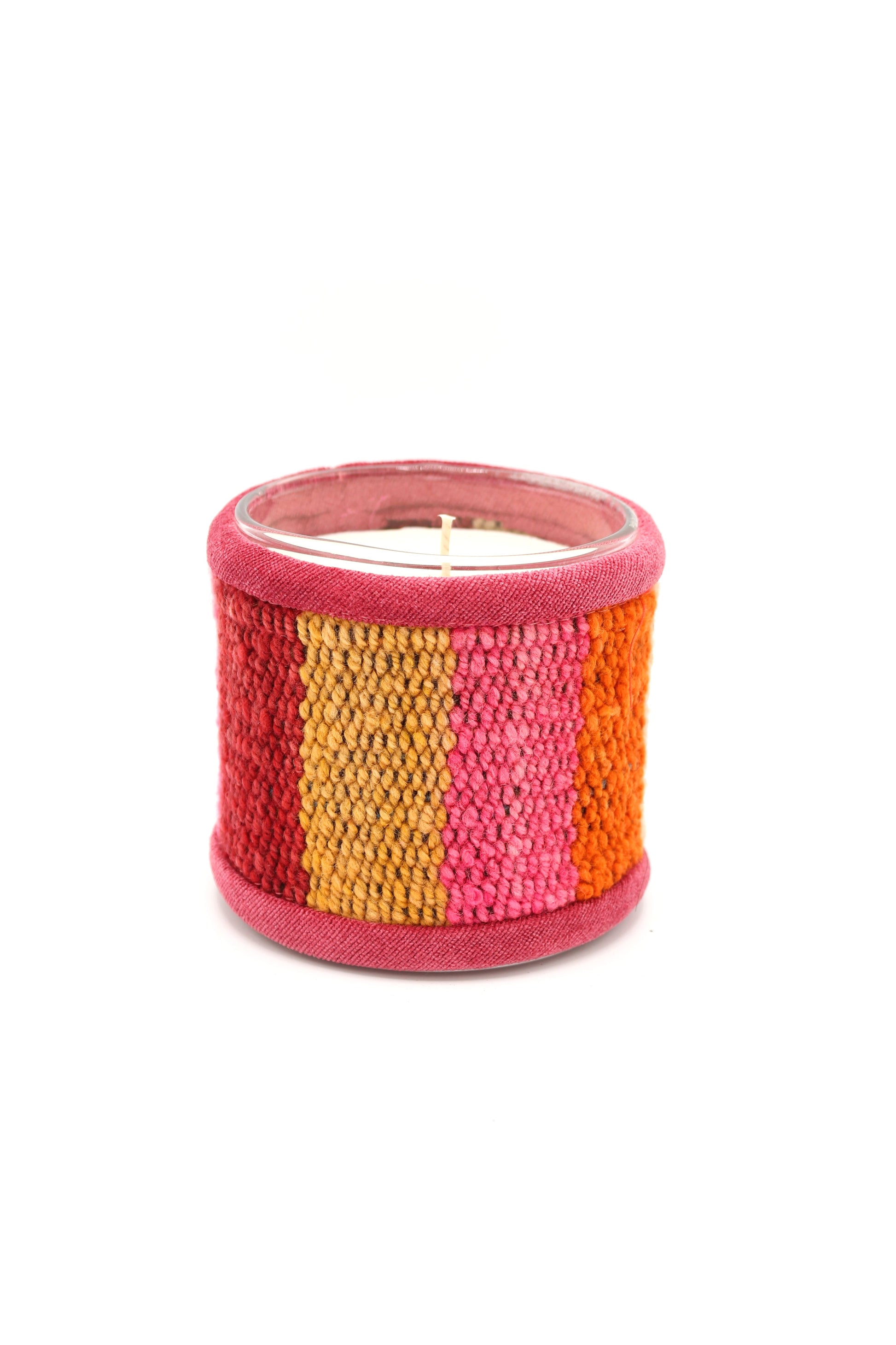 Cette bougie est fabriquée à partir de chutes de tissus en laine, tissés à la main dans les montagnes de la Cordillère des Andes. Inspirée par les couleurs vives des civilisations andines, chaque bougie reflète le savoir-faire traditionnel des femmes Quechua. Grâce à l'utilisation de tissus récupérés, chaque pièce est exclusive et unique.