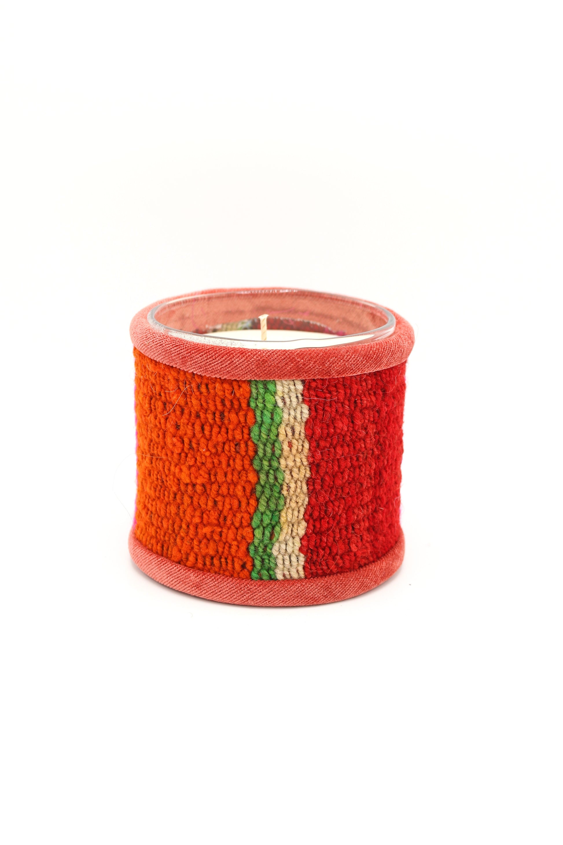 Cette bougie est fabriquée à partir de chutes de tissus en laine, tissés à la main dans les montagnes de la Cordillère des Andes. Inspirée par les couleurs vives des civilisations andines, chaque bougie reflète le savoir-faire traditionnel des femmes Quechua. Grâce à l'utilisation de tissus récupérés, chaque pièce est exclusive et unique.