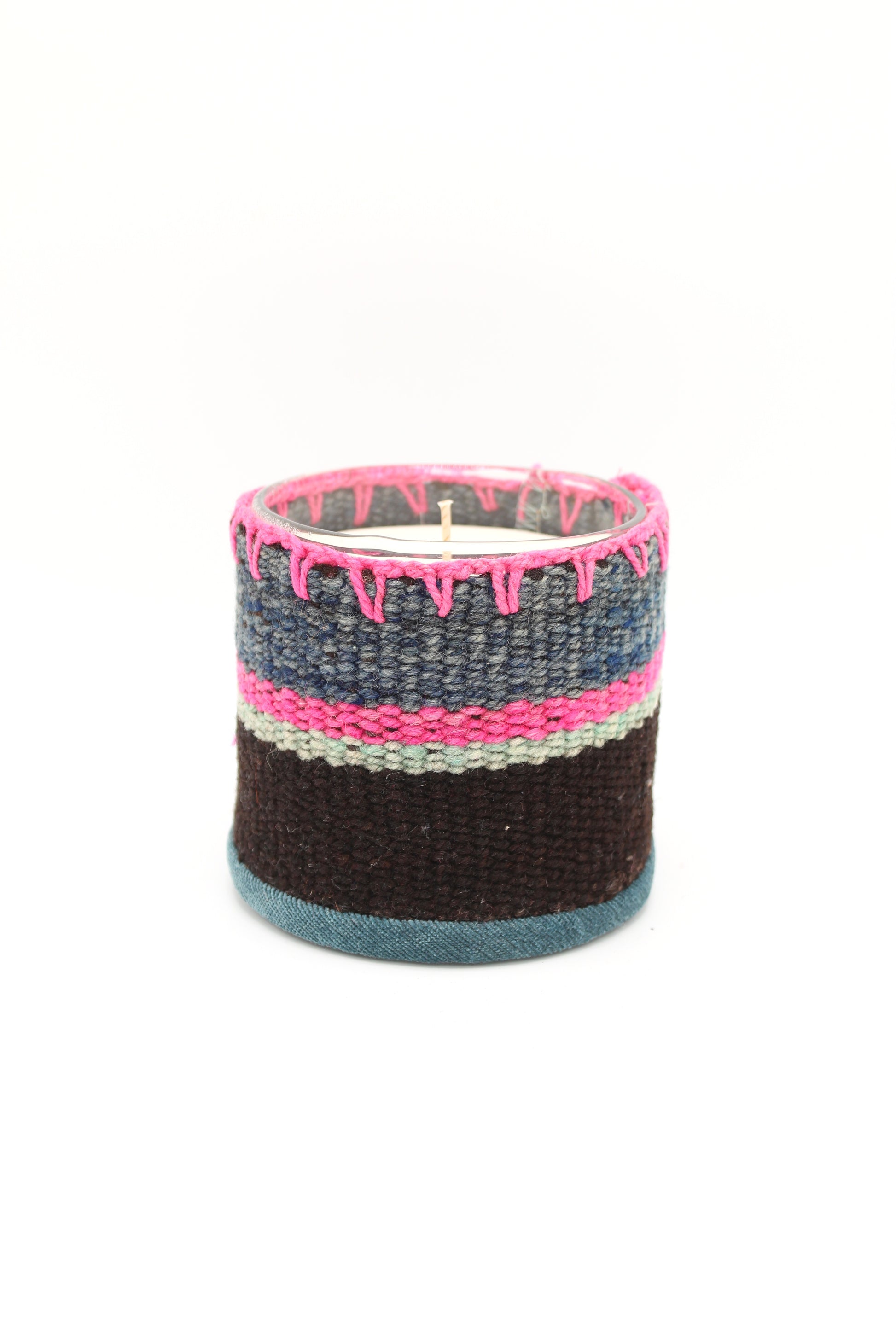 Cette bougie est fabriquée à partir de chutes de tissus en laine, tissés à la main dans les montagnes de la Cordillère des Andes. Inspirée par les couleurs vives des civilisations andines, chaque bougie reflète le savoir-faire traditionnel des femmes Quechua. Grâce à l'utilisation de tissus récupérés, chaque pièce est exclusive et unique.