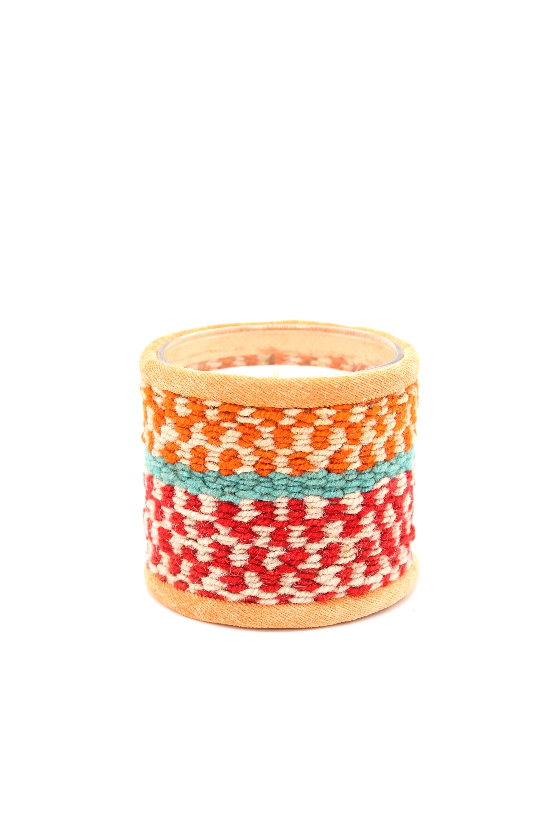 Cette bougie est fabriquée à partir de chutes de tissus en laine, tissés à la main dans les montagnes de la Cordillère des Andes. Inspirée par les couleurs vives des civilisations andines, chaque bougie reflète le savoir-faire traditionnel des femmes Quechua. Grâce à l'utilisation de tissus récupérés, chaque pièce est exclusive et unique.