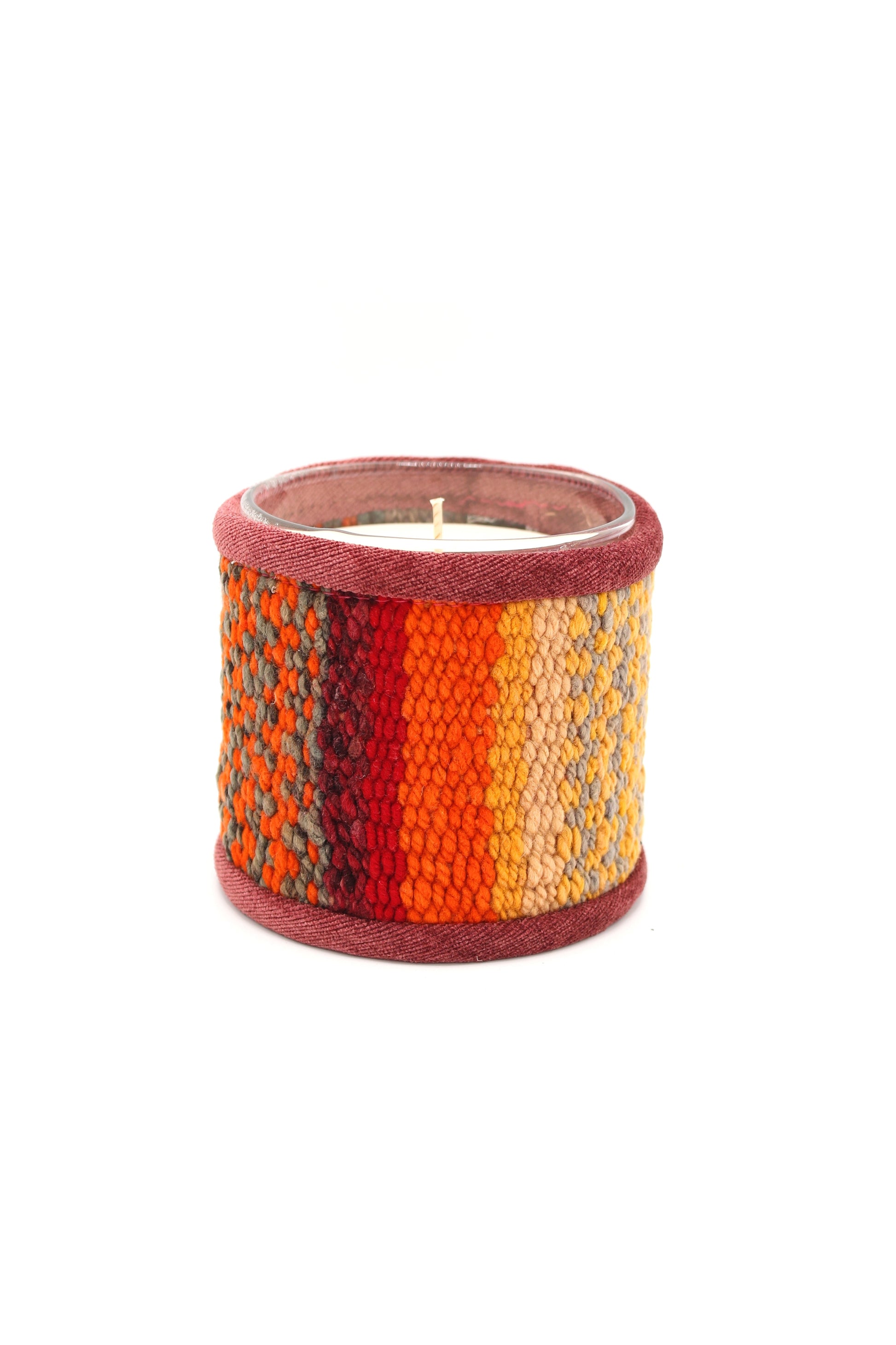Cette bougie est fabriquée à partir de chutes de tissus en laine, tissés à la main dans les montagnes de la Cordillère des Andes. Inspirée par les couleurs vives des civilisations andines, chaque bougie reflète le savoir-faire traditionnel des femmes Quechua. Grâce à l'utilisation de tissus récupérés, chaque pièce est exclusive et unique.