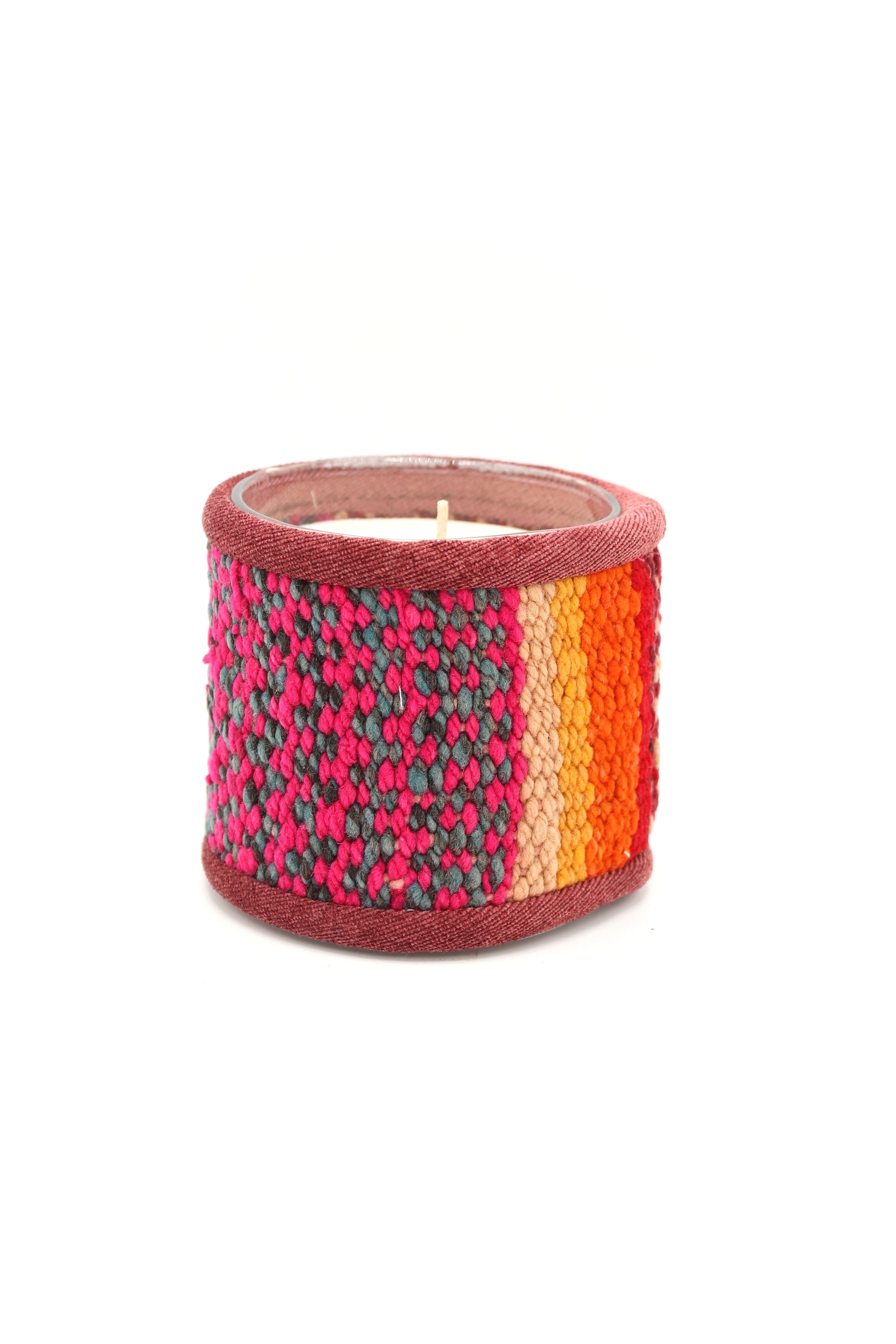 Cette bougie est fabriquée à partir de chutes de tissus en laine, tissés à la main dans les montagnes de la Cordillère des Andes. Inspirée par les couleurs vives des civilisations andines, chaque bougie reflète le savoir-faire traditionnel des femmes Quechua. Grâce à l'utilisation de tissus récupérés, chaque pièce est exclusive et unique.