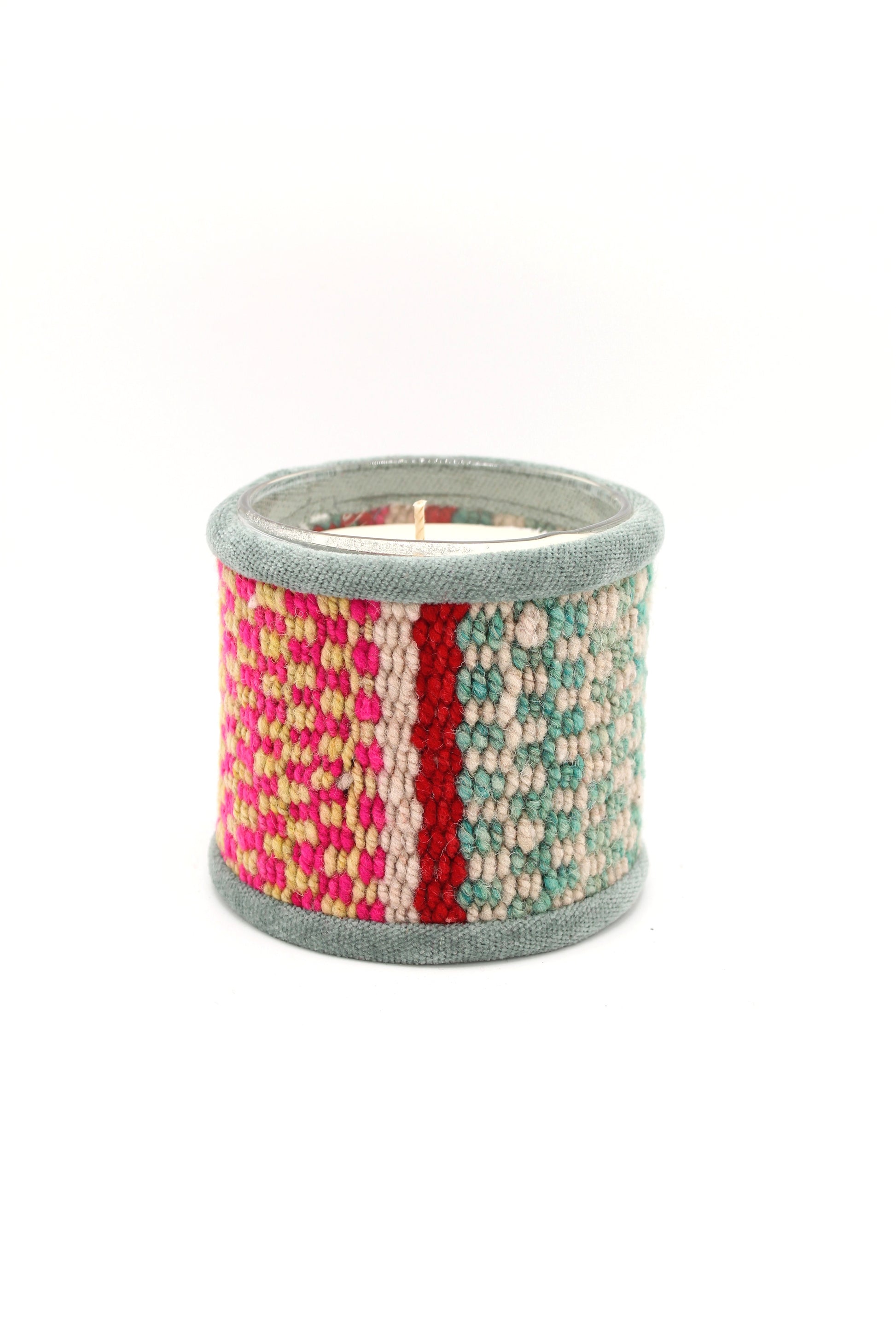 Cette bougie est fabriquée à partir de chutes de tissus en laine, tissés à la main dans les montagnes de la Cordillère des Andes. Inspirée par les couleurs vives des civilisations andines, chaque bougie reflète le savoir-faire traditionnel des femmes Quechua. Grâce à l'utilisation de tissus récupérés, chaque pièce est exclusive et unique.